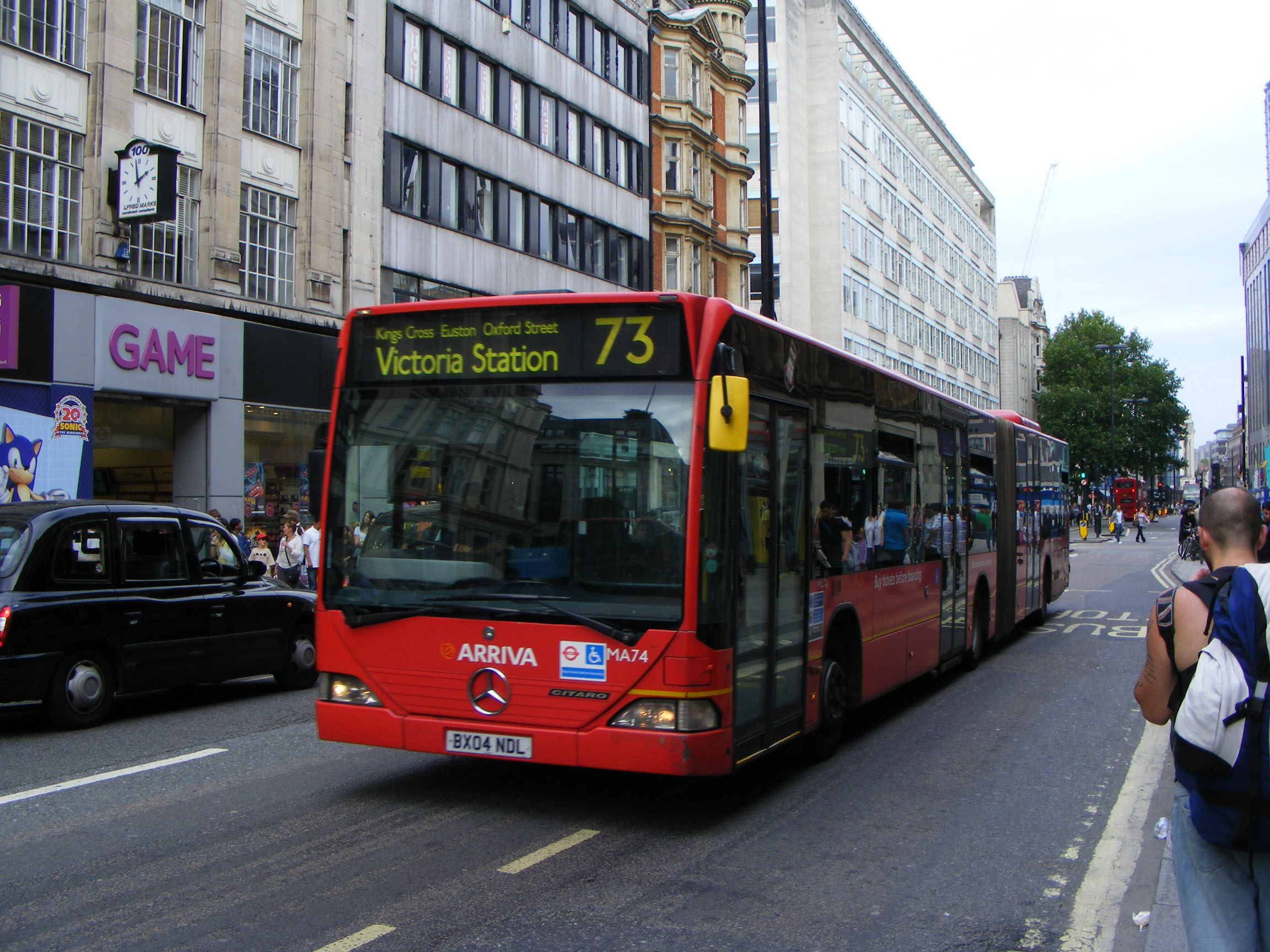 Citaro MA74 (BX04NDL) heads down Oxford Street for Victoria in July 2011.
