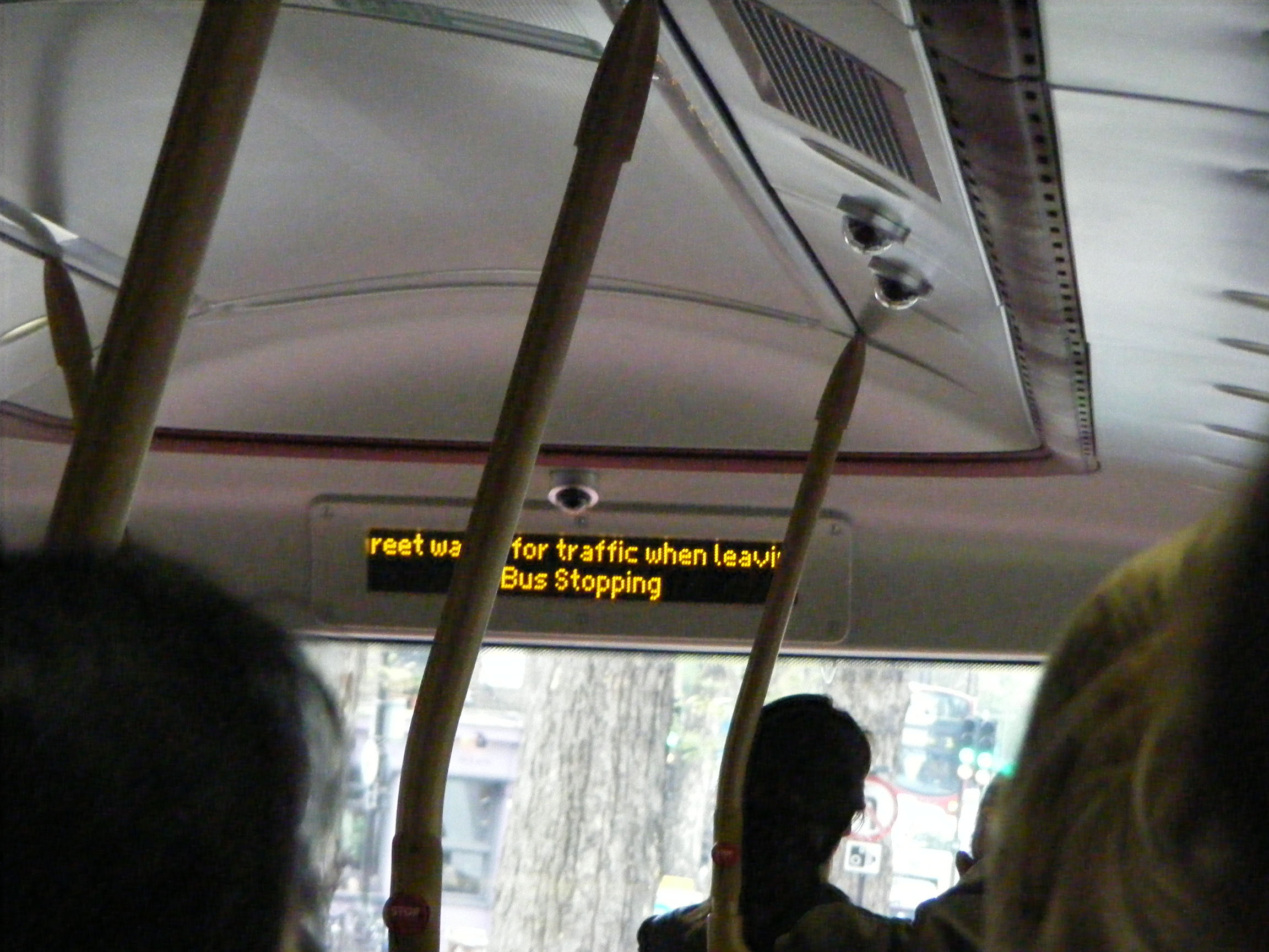 Some inside shots of LT6 (LT12FHT), from which the Picture of the Week LT2 was taken. The scrolling sign and accompanying announcement warn passengers to look for moving traffic when alighting. |