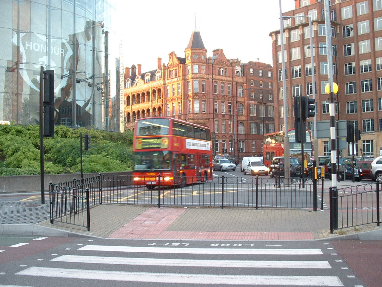 Seen in Wembley is TN968 (X968HLT) a Plaxton President bodied Dennis Trident on the 18 to Euston Station. Showing signs of tree damage, the bus was one of the first to acquire distinguishing yellow markings on the wing mirrors, but also lower down on the front, presumably to aid its visibility. |