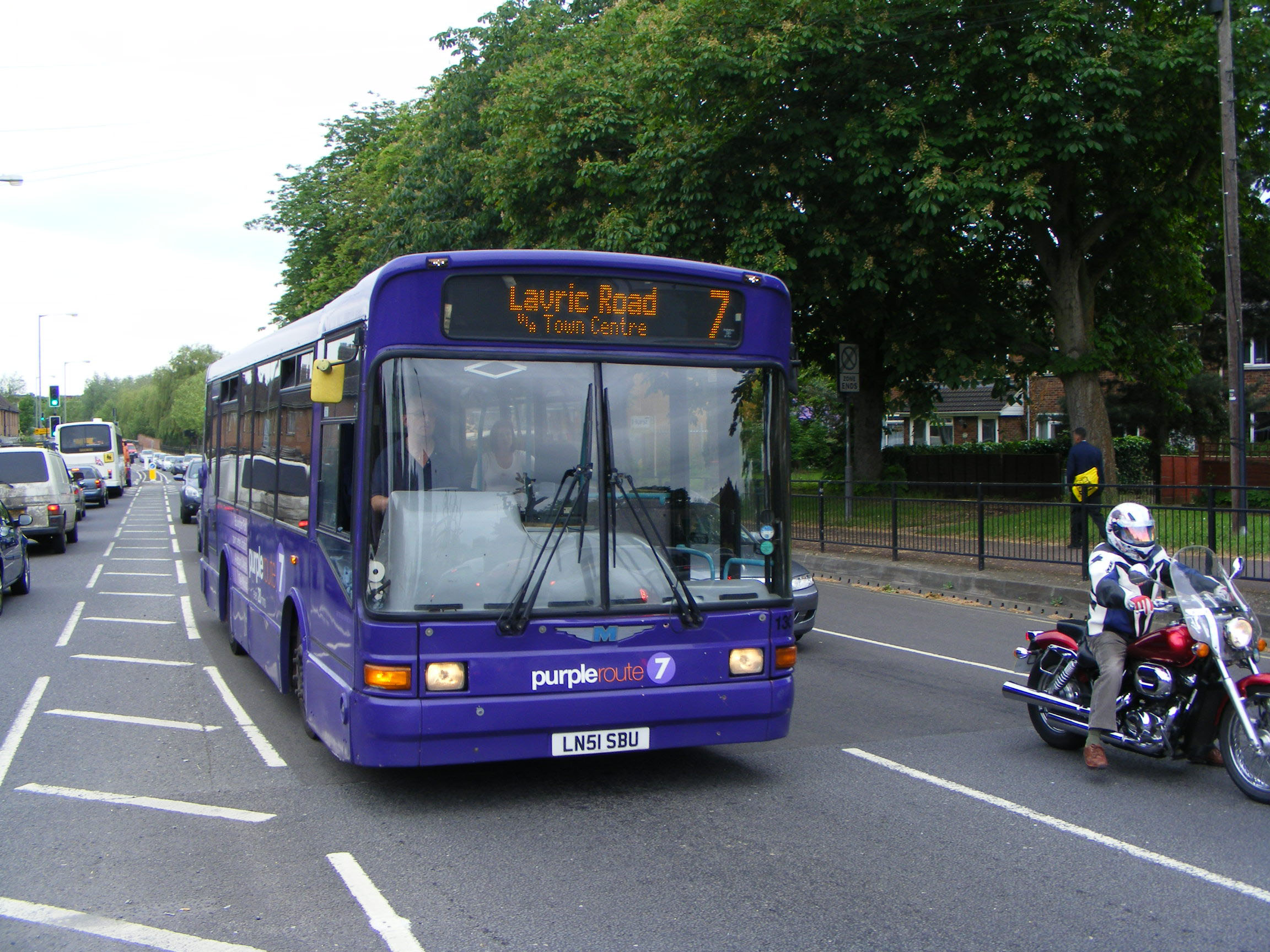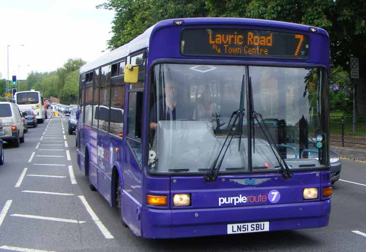 Z&S of Aylesbury were using this ex First Marshall bodied Dart, LN51SBU, on the purple branded rainbow route on the town's bus network. It was originally DMS456 but was one of the Darts passed to Metrobus with the Orpington operation where it became their 130. |