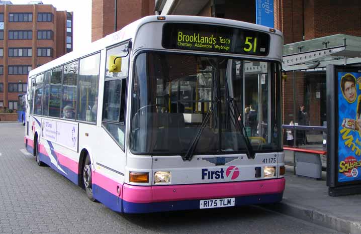 First Berkshire, under common management with First London, receives a lot of London cast offs and this Marshall bodied Dart SLF 41175 (R175TLM) is seen at work in Bracknell in March 2011. ![]() |