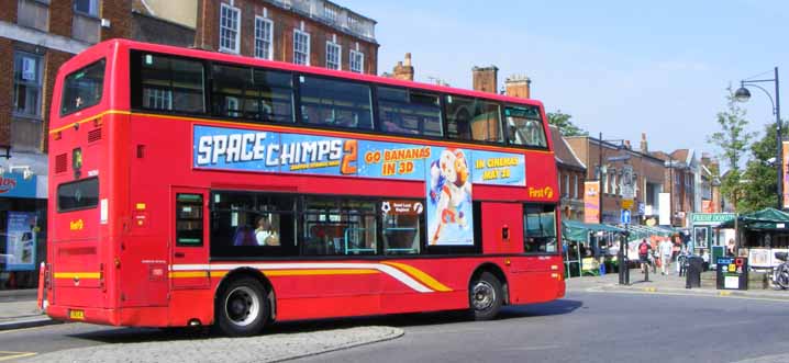 As will be seen better in this shot once TN32963 had turned into the High Street there is a special decal in the first offside window. It depicts the message Good Luck England sandwiched between a football and the First F symbol. The same message appeared on First buses nationwide for the 2010 World Cup.