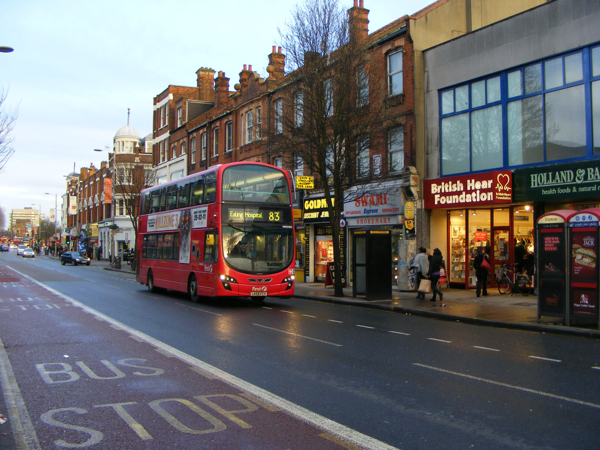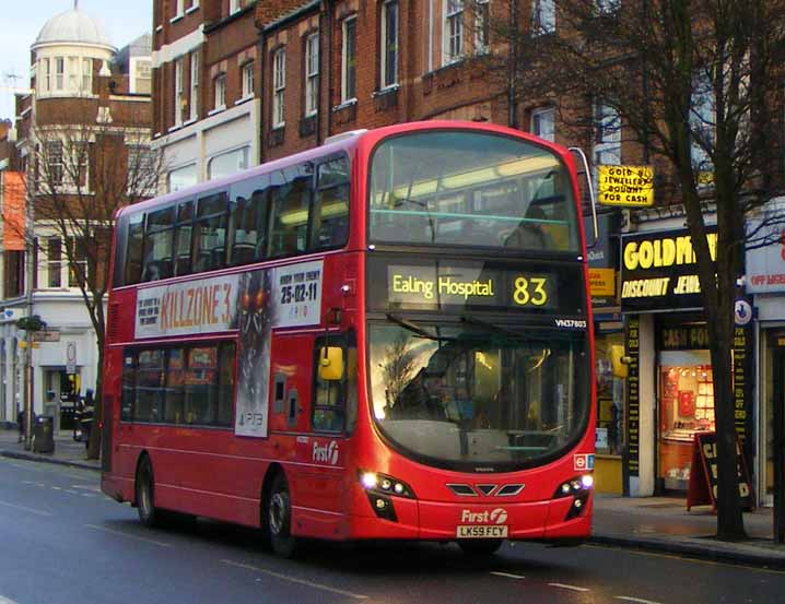 Making its way through Ealing in February 2011 is Volvo VN37803 (LK59FCY).