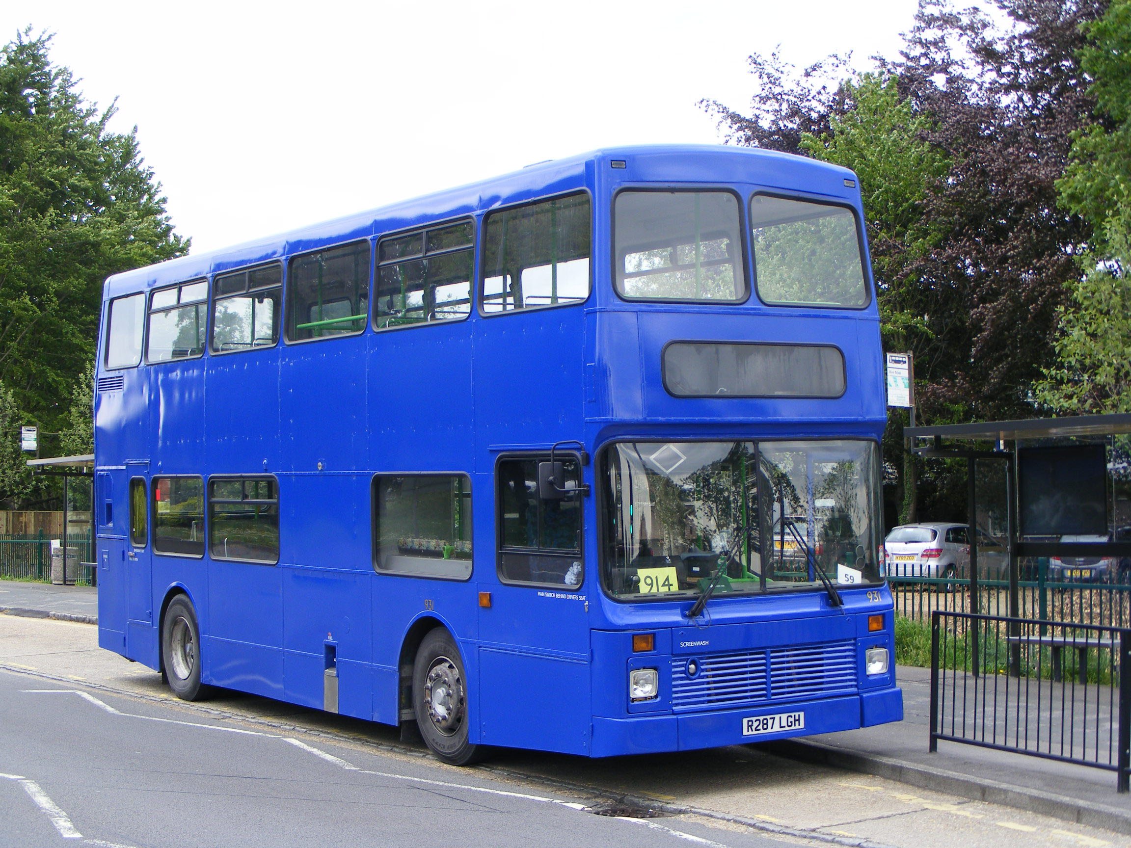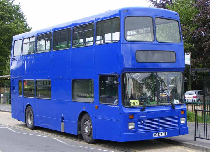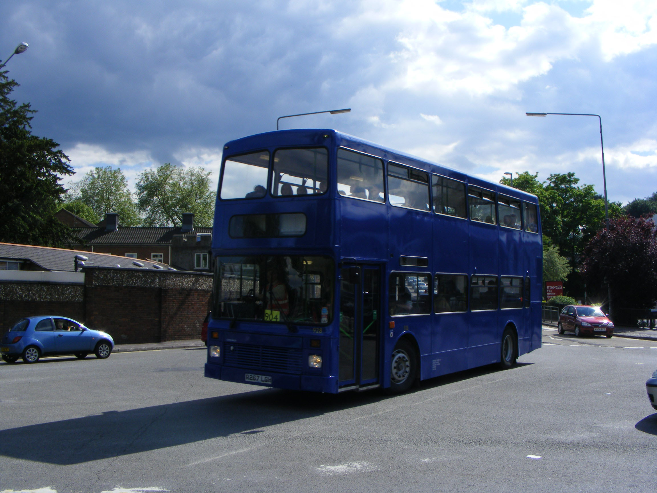 Several changes befell Carousel on take over by Go-Ahead: fleet numbering, route changes and vehicles. Ousting the MCW Metrobuses, older Olympians and Ailsas from school contracts were a batch of Northern Counties Volvo Olympians painted in a blue livery. The colour possibly a hangover from the former West Midlands Metrobuses lettered for the Carousel Contract Fleet on their TWM blue livery. The buses have since acquired school insignia and quotes like "E=mc2" to denote their new roll. Carousel 928 (R267LGH), former London Central NV67, is seen at the foot of Marlow Hill in June 2012. |