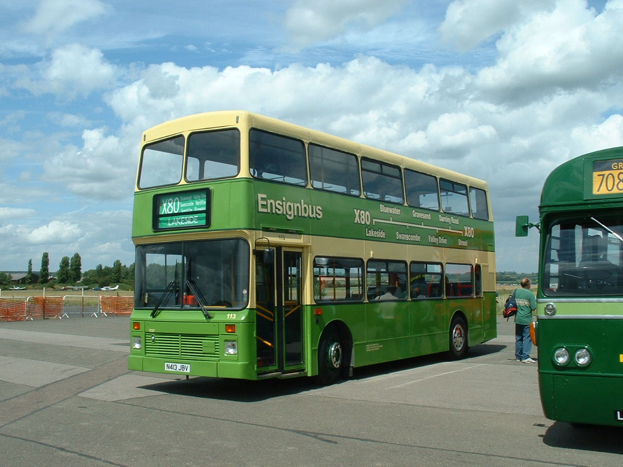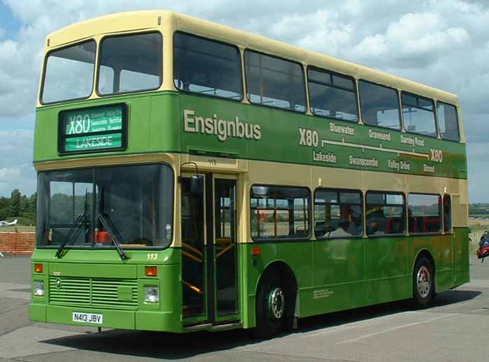Being the dealer in London buses, Ensignbus has the pick of the best for its own operational bus fleet and former NV13 from London Central Olympian was branded for its X80 service as Ensignbus' 113 (N413JBV) painted in a Southdown inspired colour scheme. It is seen at the 2004 North Weald event when freshly prepared for service. |