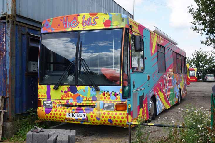 This Oxford playbus was parked at the Red Rose yard out at Dinton just beyond Aylesbury in July 2015. The bus has an interesting past being new to London Buses as VN1 (K100KLL) at the point at which London General became a separate devolved company. The independence instantly manifested itself in the registration which reflected the MD's initials (Keith Ludeman) and it had distinctive route branding as the Clapham Omnibus replacing MCW Metrobuses on route 88. The longer Northern Counties Volvo B10B buses did not suit the route well and they were displaced by doubledeckers to join other B10B Volvos in the fleet of fellow Go-Ahead subsidiary Oxford Bus where VN1 became 644 and re-registered K118BUD.