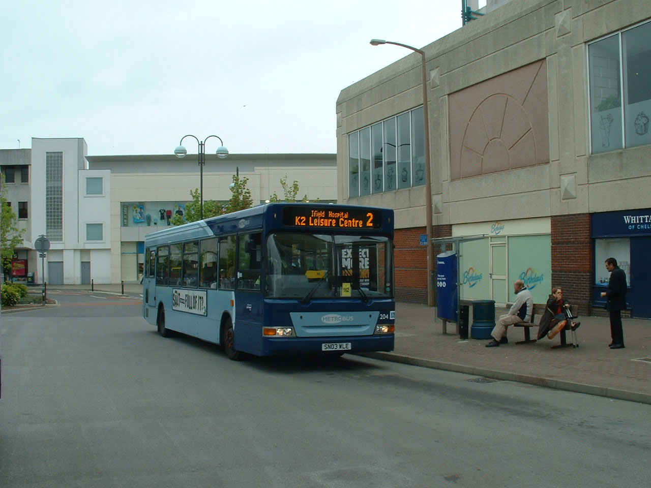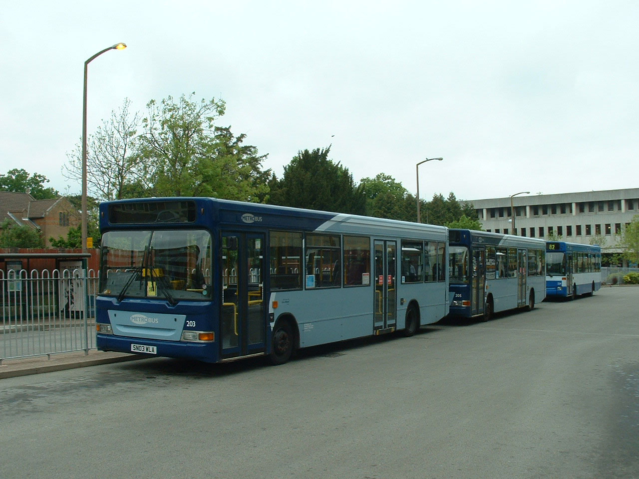 Dart 203 and 205 (SN03WLA/F) in the new livery on layover in Crawley Bus Station in May 2007. The dual door bodywork indicates that these Darts first saw service on London Buses routes.