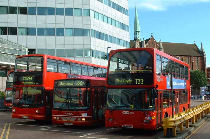 Alongside a pair of Arriva DAFs in West Croydon bus station on June 22nd 2007 is Metrobus Scania/East Lancs 491 (YN53RZD). It will be noted that the bus has lost blue and yellow splashes in favour of Ken red.