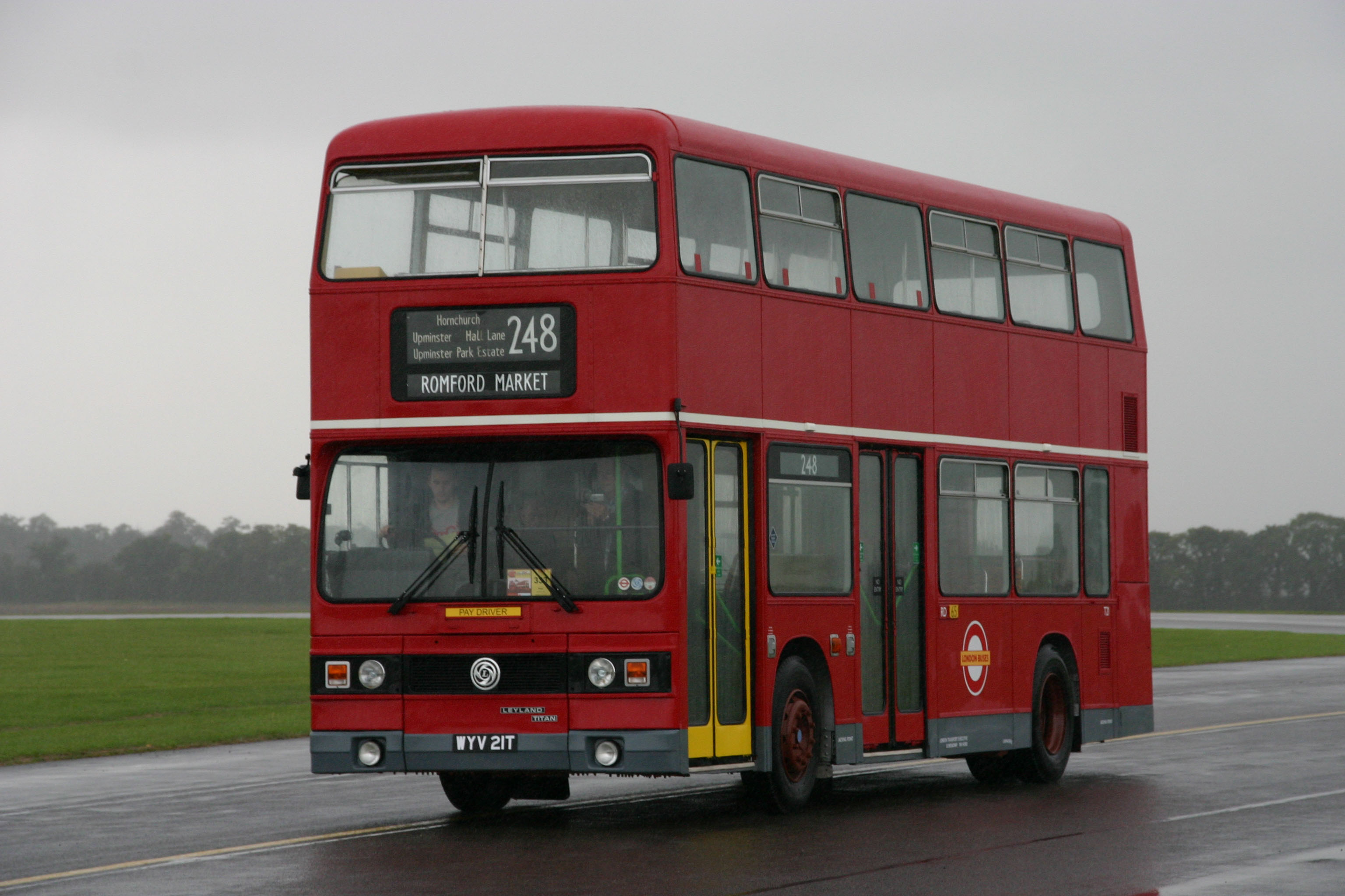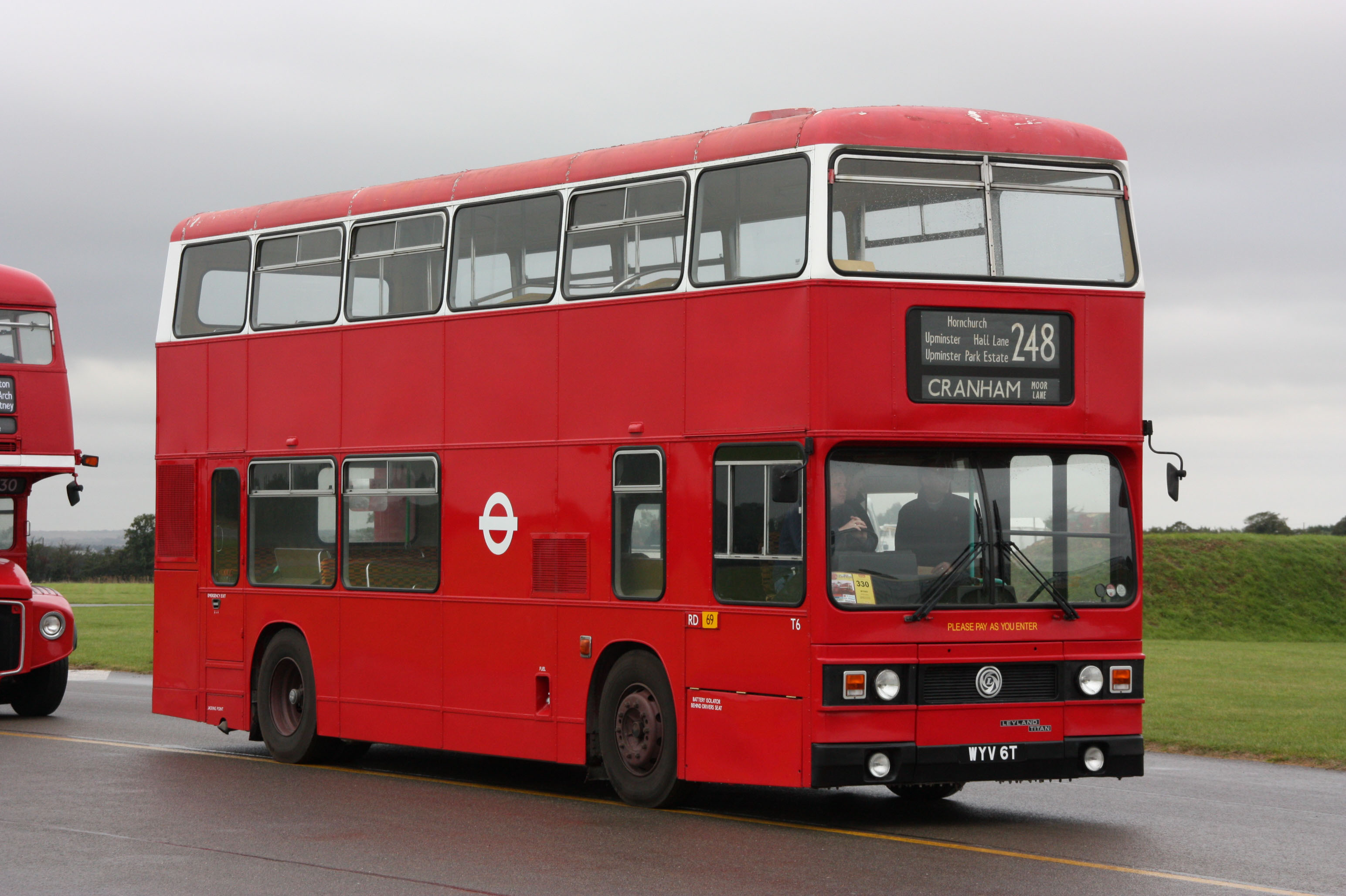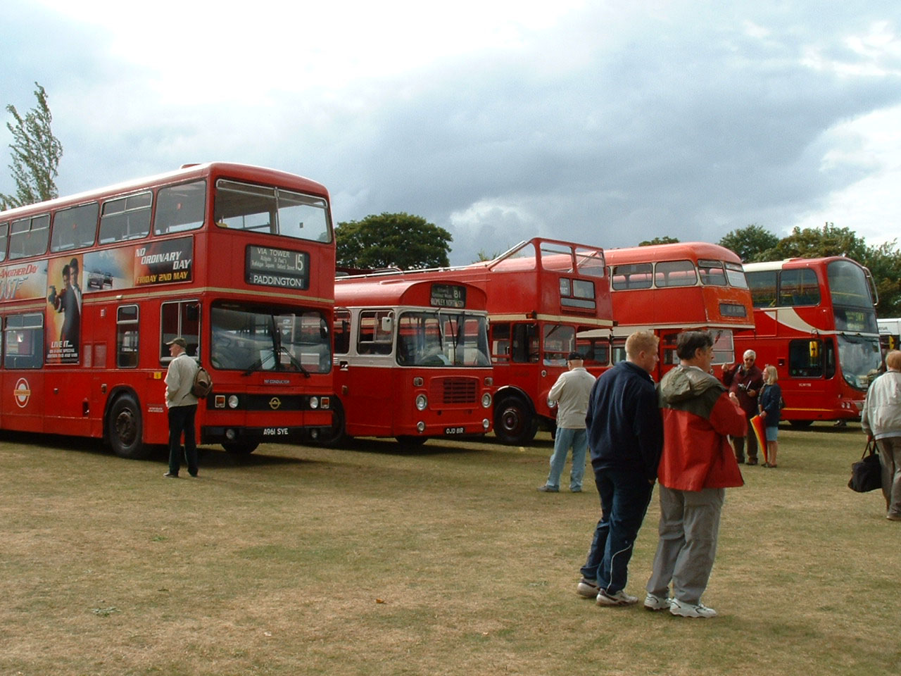 Titan T961 (A961SYE) appears to be restored to the London livery it had when new. It is seen in a line up of late arrivals at Duxford in September 2003.