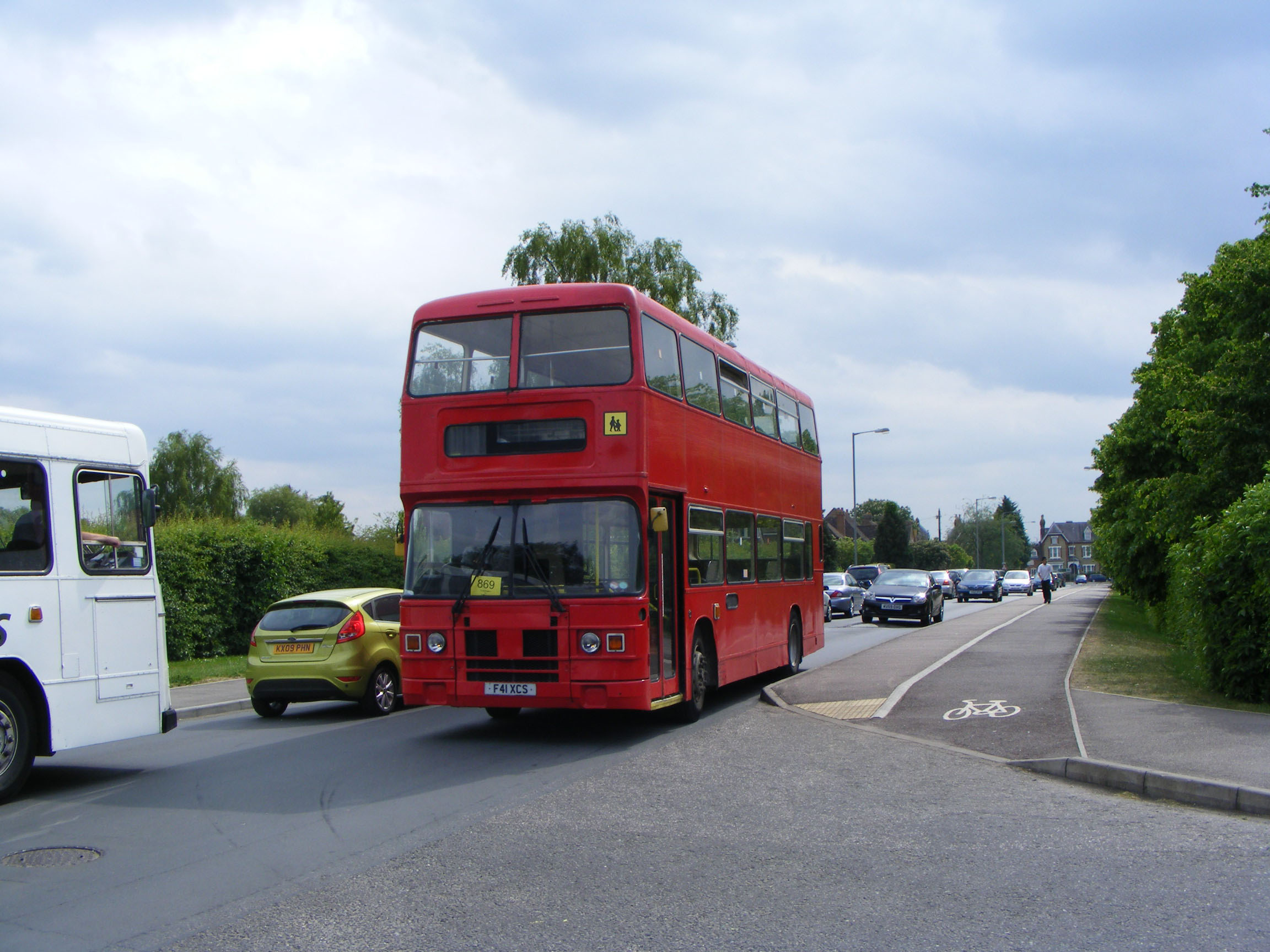 Leaving the Grange School Coach Park in June 2009 is former A1 Service all Leyland Olympian, F41XCS. The bus passed to Western when A1 was acquired by Stagecoach and became 14520 in the company's national numbering scheme. The bus passed to Busways and United Counties before leaving Stagecoach and joining TWH (Travel With Hunny). It passed from TWH to Z&S International of Aylesbury with whom it was photographed.