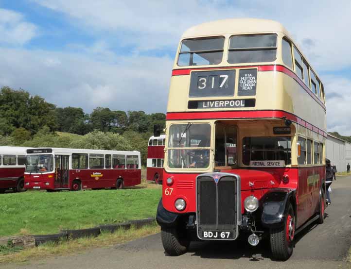 St Helens was famous for its fleet of London style RT AEC Regent 3RT buses. The Park Royal bodied vehicles were delivered new to St Helens. Preserved at the Scottish Bus Museum is former D67 (BDJ67), seen on display alongside an ex Southdown open top Bristol VR at the 2014 Open Day in August.