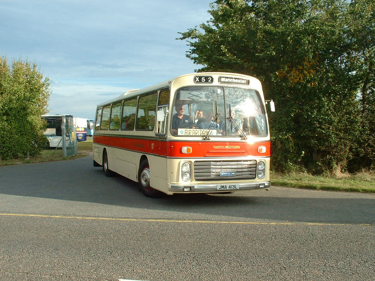 at SHOWBUS in a late version of poppy red and white DP colours. North Western 413 (JMA413L) is seen