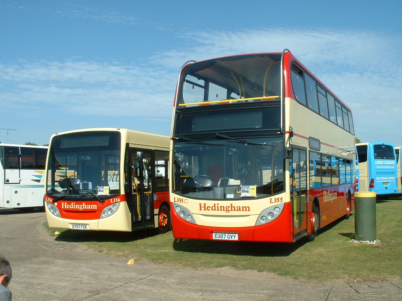 Hedingham have been supporters of SHOWBUS going right back to the Hillingdon Show days, and their vintage Leopard L84 (RGV284N), which in those days was new, still attends regularly. The fleet is a lovely mix of one off purchases bought either new or secondhand. Nicely posed alongside each other are the fleets current examples of the latest Enviro products from Alexander-Dennis, the doubledeck 400 model and singledeck 200.