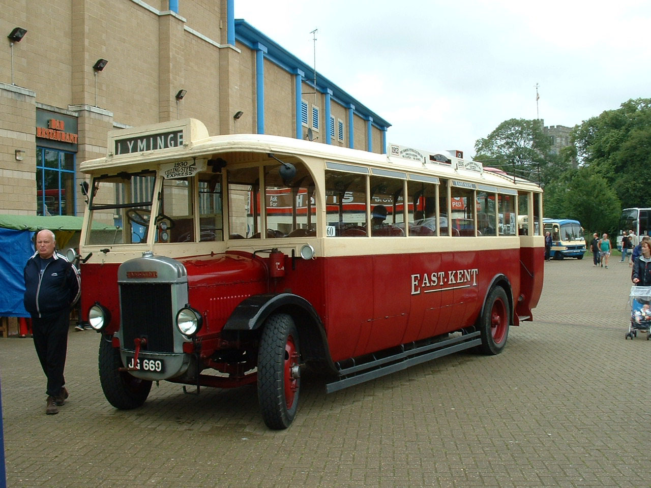 East Kent JG669, a 1930 Tilling Stevens 'Express' with Brush coachwork. The chassis of this bus was built at Victoria Works, St. Peter's Street, Maidstone. The bus served with East Kent until 1945. It was acquired by its present owner in 1967 in derelict condition from a scrapyard in Wantage.