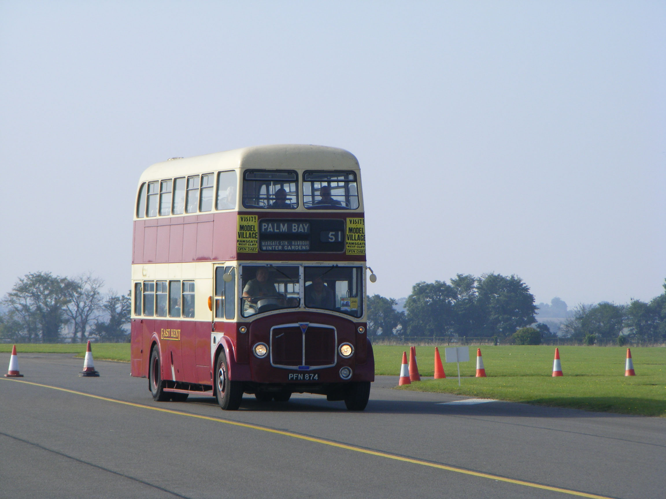 Full fronted Park Royal bodied AEC Regent V PFN874 is seen arriving at SHOWBUS the previous year. Its sister vehicle, open top PFN879 used to promote SHOWBUS and the Hillingdon Show on behalf of NATIONAL EXPRESS back in the seventies. |