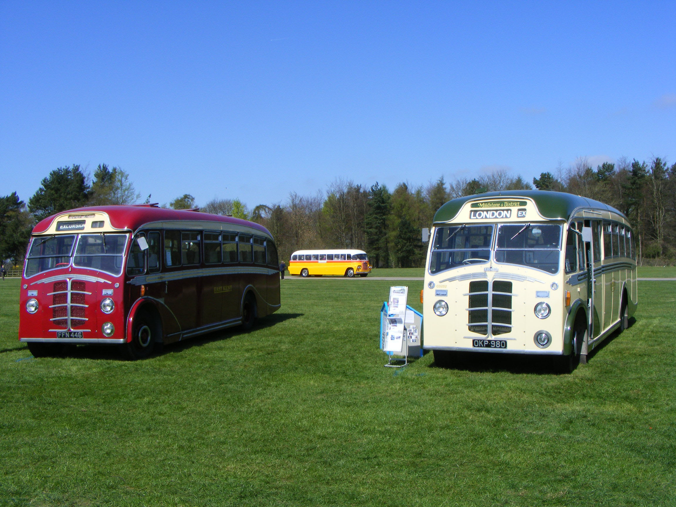 The Maidstone & District Beadle is now part of Thorne's Independent heritage fleet and has been to SHOWBUS many times. It retains the cream and green livery, whereas others in the heritage fleet are normally in Thorne's pale blue and grey colours. Note the Maltese Bedford in between giving trips around the showground.