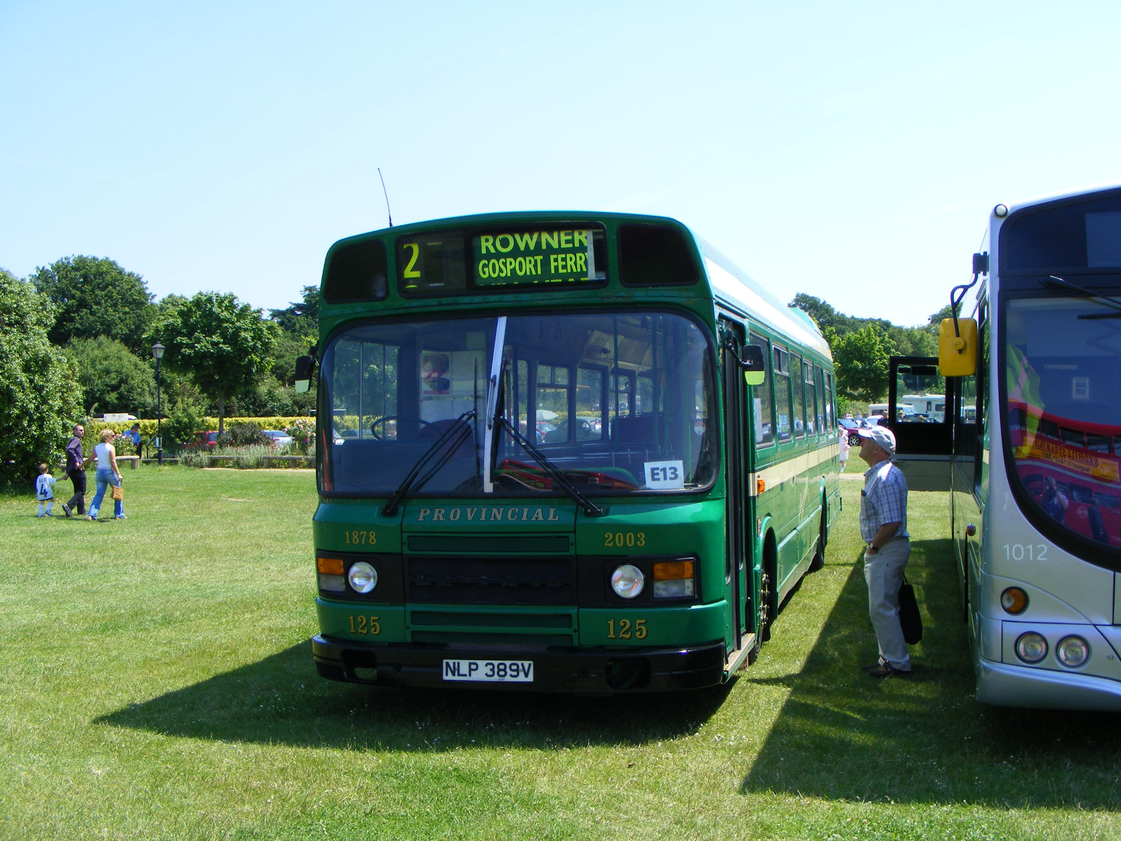 In 2003 the ex BA National 2 was renumbered 125 and repainted in traditional Provincial livery to celebrate the company's 125th anniversay, even though by then the operation had been submerged into the First empire. Preserved 125 is seen five years on at the 2008 Royal Victoria Rally at Netley Park. |