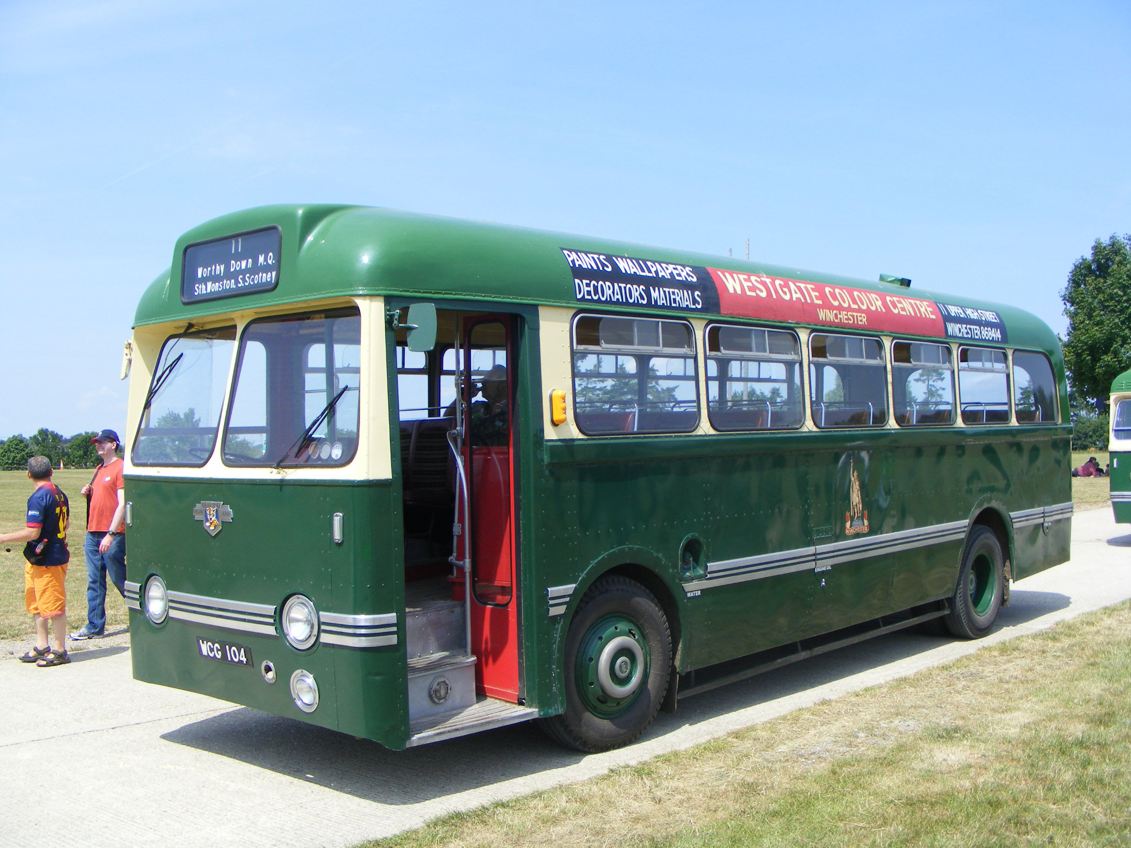 King Alfred WCG104 was one of a batch of three Leyland Tiger Cubs (WCG103-105) with Weymann bodywork bought in 1959. Bought at the same time were AEC Bridgemasters WCG106 & 107. Tiger Cub WCG104 is seen at the 2001 Southsea Spectacular.