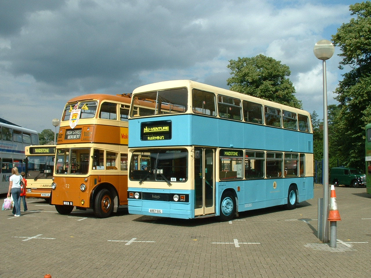 Seen at North Weald in June 2004, Nu-Venture's T857 (A857SUL) had been repainted into Maidstone Corporation's livery to commemorate the centenary of the defunct municipal operation in that town. |