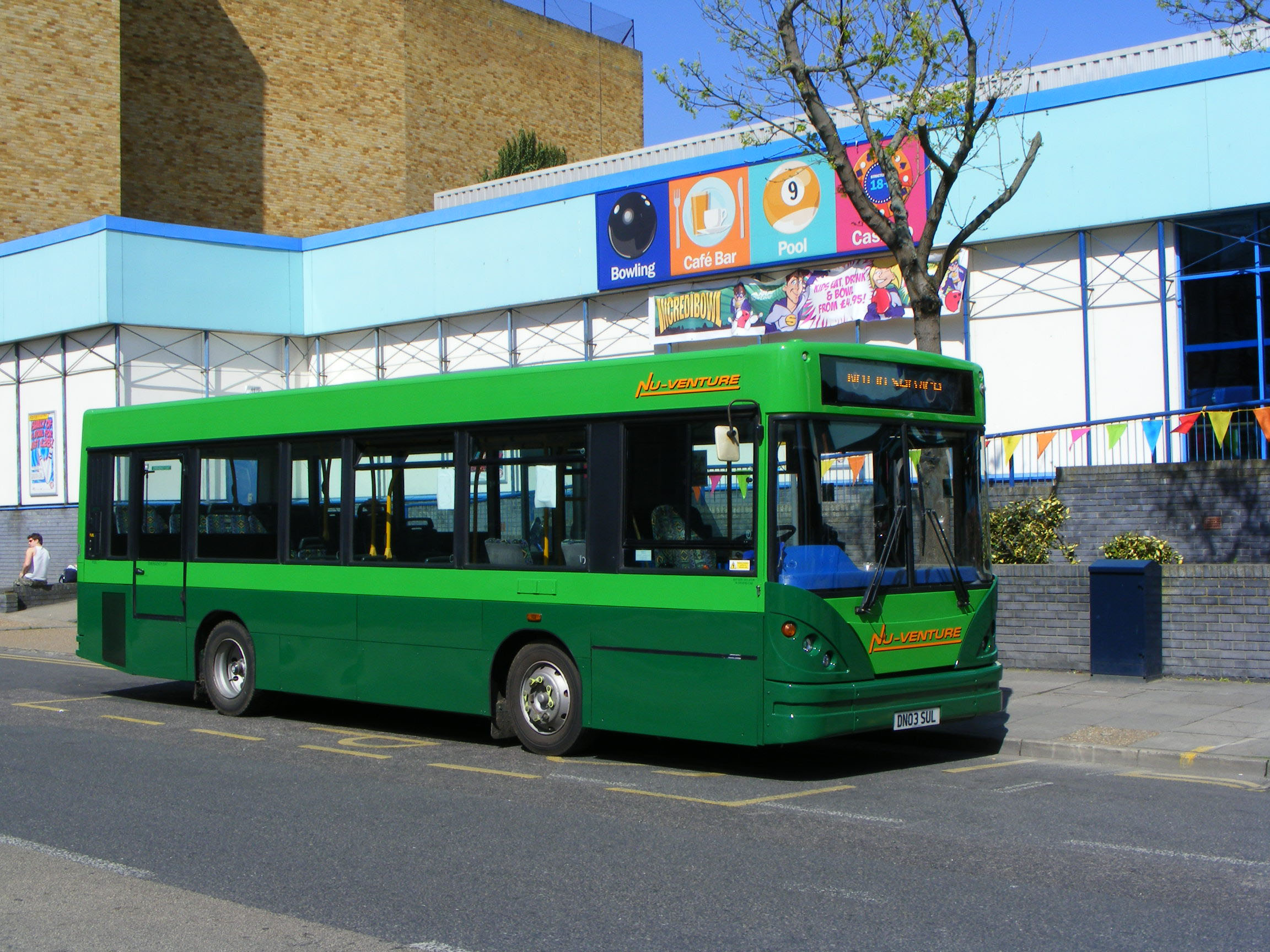 Former Sullivan Buses DN5 (DN03SUL), a short Caetano Nimbus bodied Transbus Dart was sold to Nu-Venture and is seen at work in Maidstone in April 2011. |