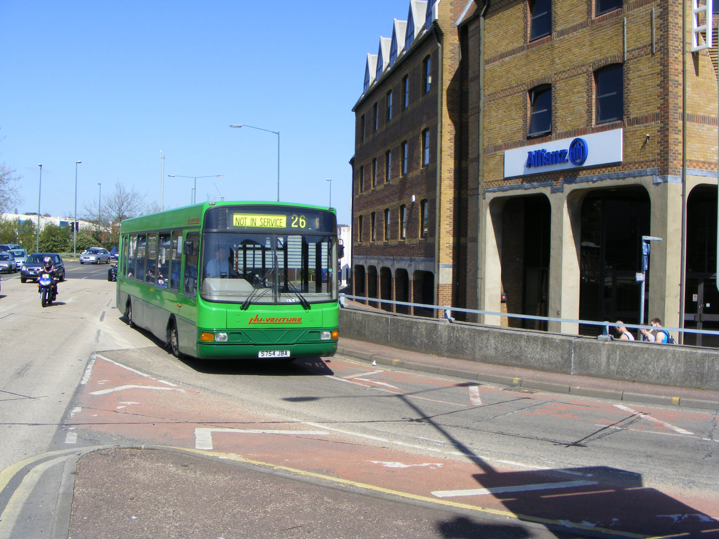 Looking fresher back in April 2011 in Maidstone is former Bluebird Wright Cadet bodied Dennis Dart SLF S6BLU no S754JBA with Nu-Venture. |