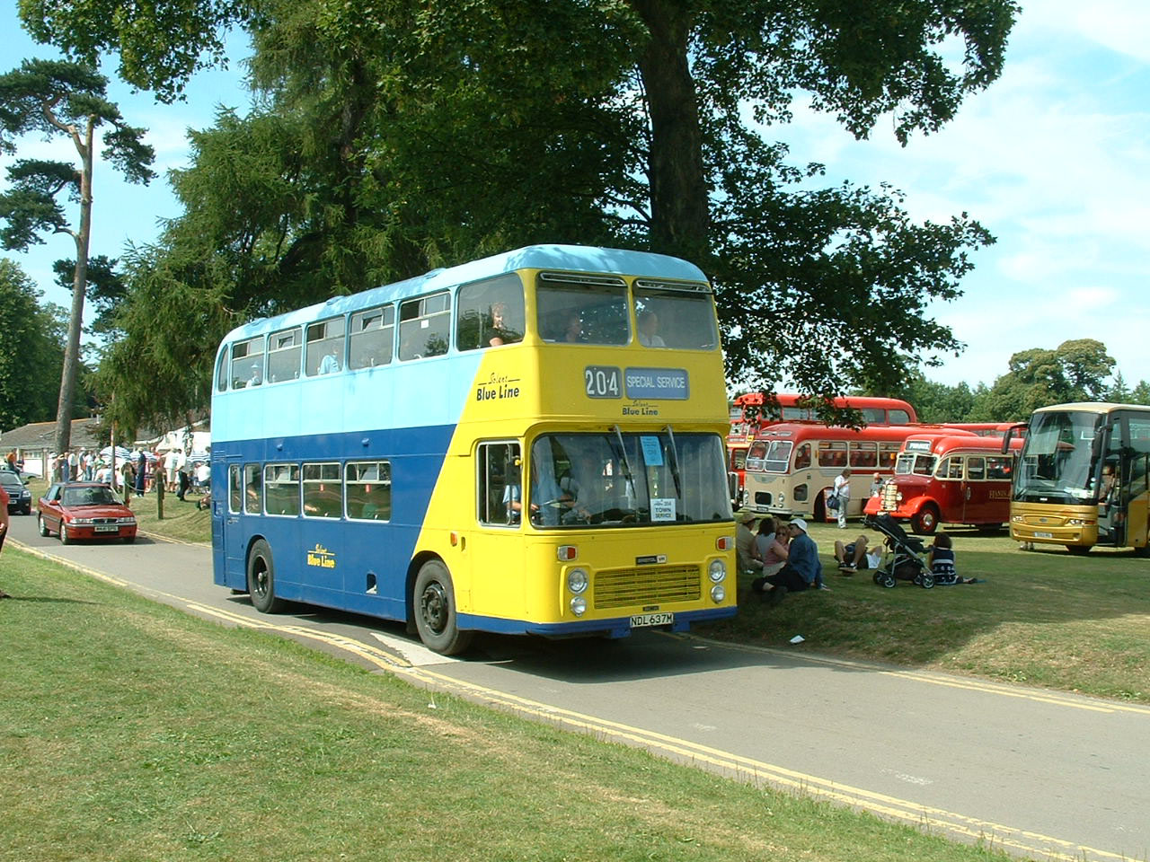 New in 1973 to Southern Vectis as 637, this VR was one of the first in the "Musterphantom" Solent Blue Line fleet as 37 (NDL637M) in 1987. It was withdrawn in 1989 and passed to Taylors of Sutton Scotney for six years followed by a brief spell with Home James of Southampton and finally four years with Classic Coaches of High Wycombe. In 2000 it passed to preservationists on the Isle of Wight who have restored it to the original bold Solent Blue Line colours. It is seen here at the 2006 Alton Rally. |