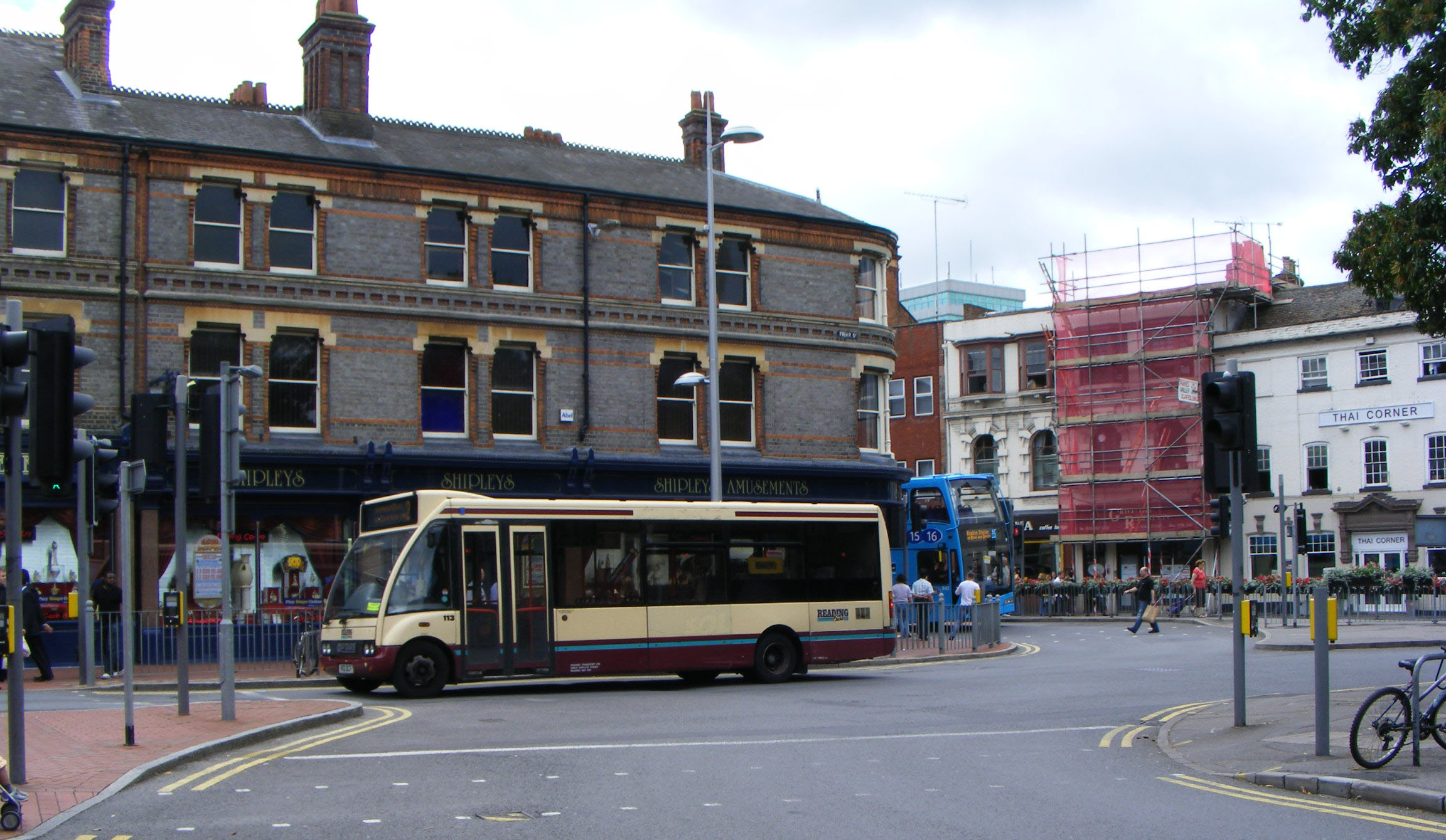 Reading Buses Optare Solo 112 (V112DCF) is seen heading for the stations in Greyfriars Road in July 2008, both it and 113 below went on to work for Country Bus. |