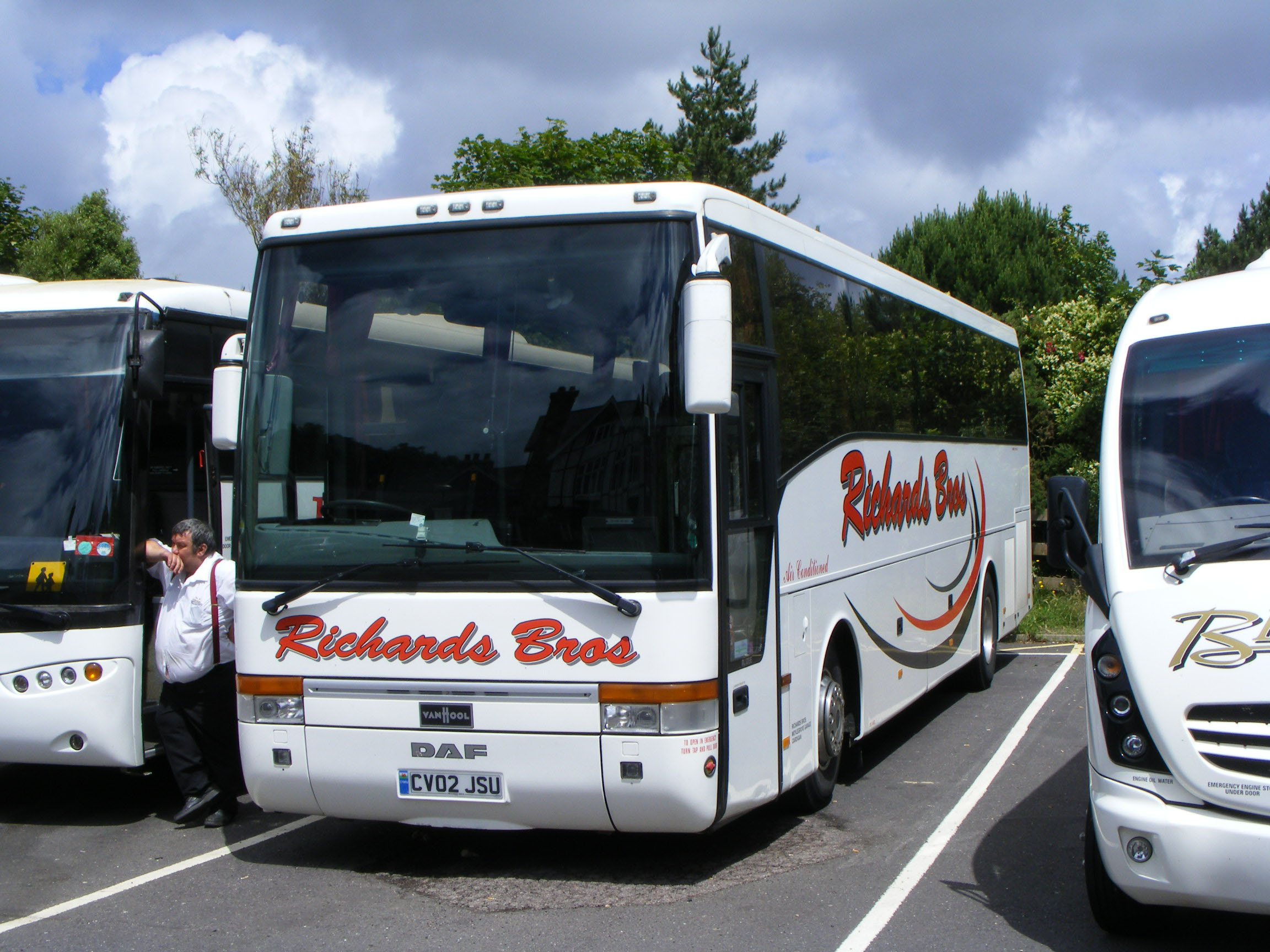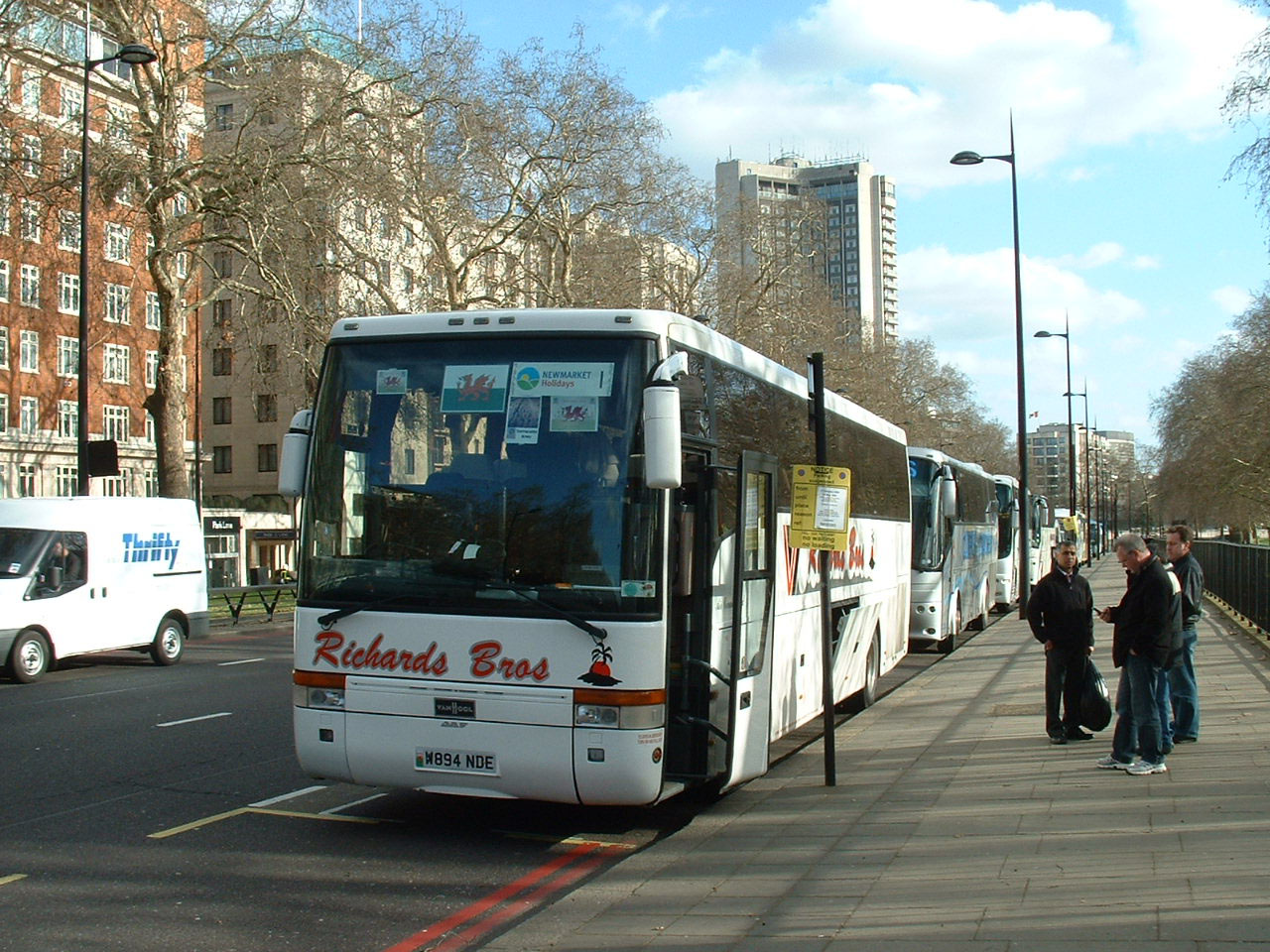 New to Group Travel of Stourbridge as Y689HPG, this Berkhof bodied Volvo B10M now has cherished plate Y19DJT for DJ Thomas of Neath. It is seen by the Tower of London on a gloomy summer's day in July 2007.