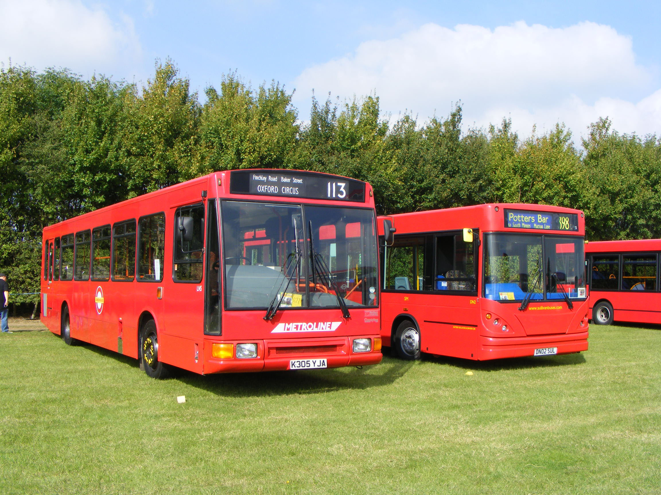 A very modern preserved vehicle appeared at SHOWBUS 2008 in the shape of ex Metroline Northern Counties bodied Dennis Lance LN5 (K305YJA). Alongside is a Caetano bodied Dennis Dart of Sullivan Buses. |