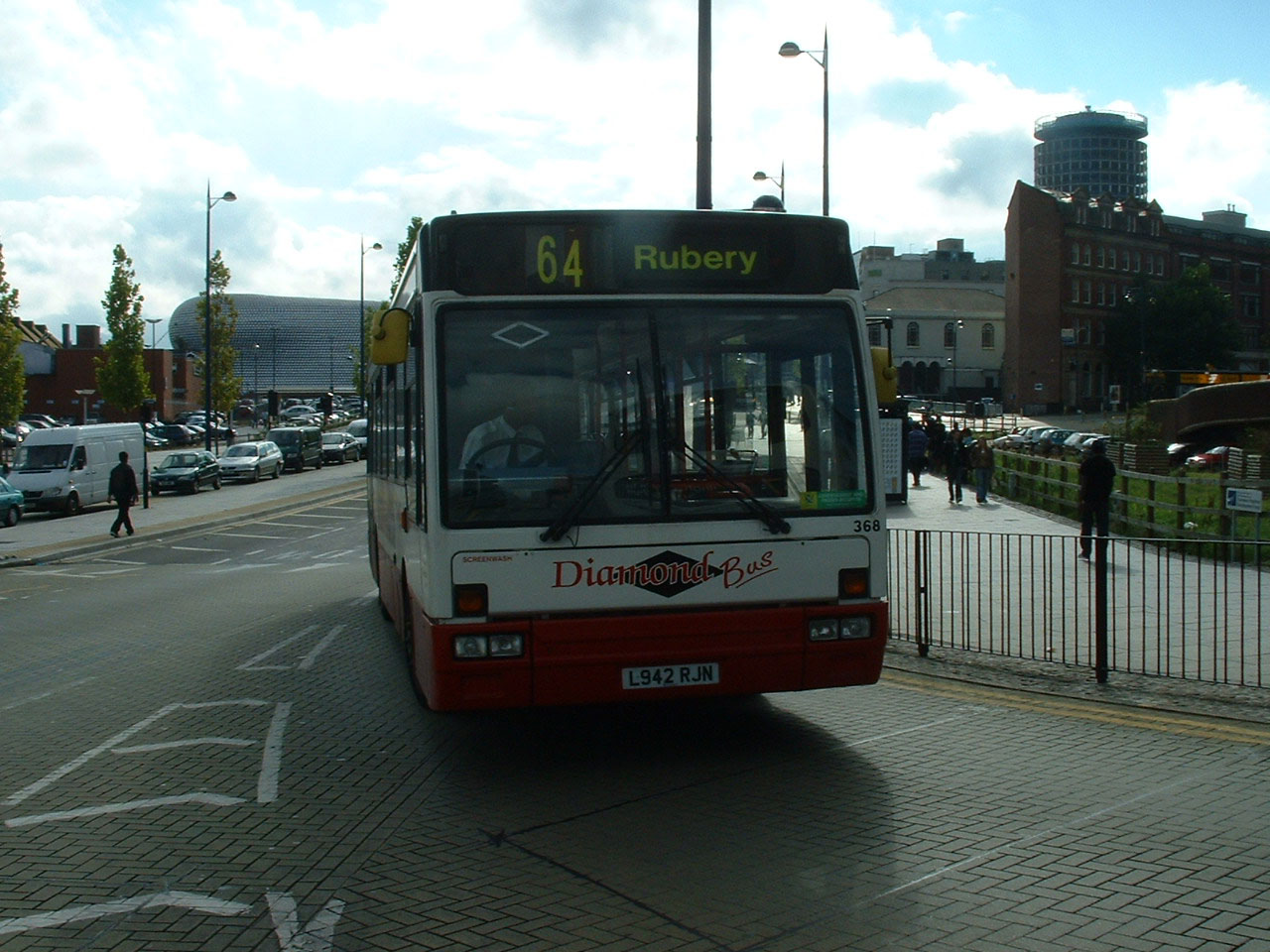 This Plaxton Verde bodied Dennis Lance, 368 (L942RJN), of went well with the company's Lances from Metroline, but 368 was ex Stagecoach. It too had been new to London Buses as LV12 (L212YAG), got reregistered as WLT461 (off RM461) and became part of Stagecoach Selkent and later acquired the registration L942RJN. The bus was transferred to Stagecoach South Coast as 1212 and on to Stagecoach North West with Stagecoach national fleet number 27212. Unfortunately disaster struck and the bus became a victim in the 2005 Carlisle floods. After salvage it joined Diamond Bus. It since gained a fourth registration: LUI9627 after Go West Midlands sold it to Premiere of Nottingham.