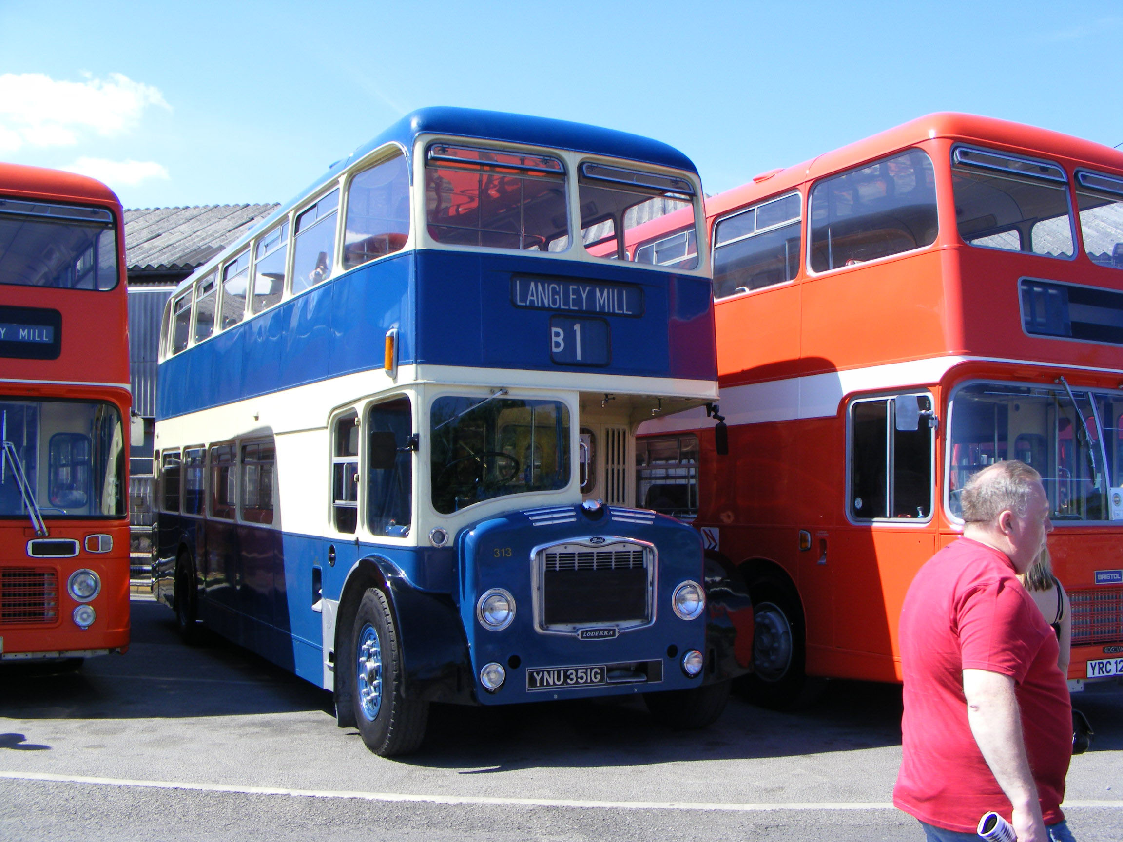 The last Bristol Lodekka to enter service in the world was Midland General's FLF6G 313 (YNU351G) in September 1968 along with sister vehicle 312 (YNU350G). The accolade of last vehicle built however belongs to Eastern National's 2614 (AVX975G). Lodekka 313 is now preserved and is seen at the Trent Centenary celebration at Langley Mill depot in May 2013. |