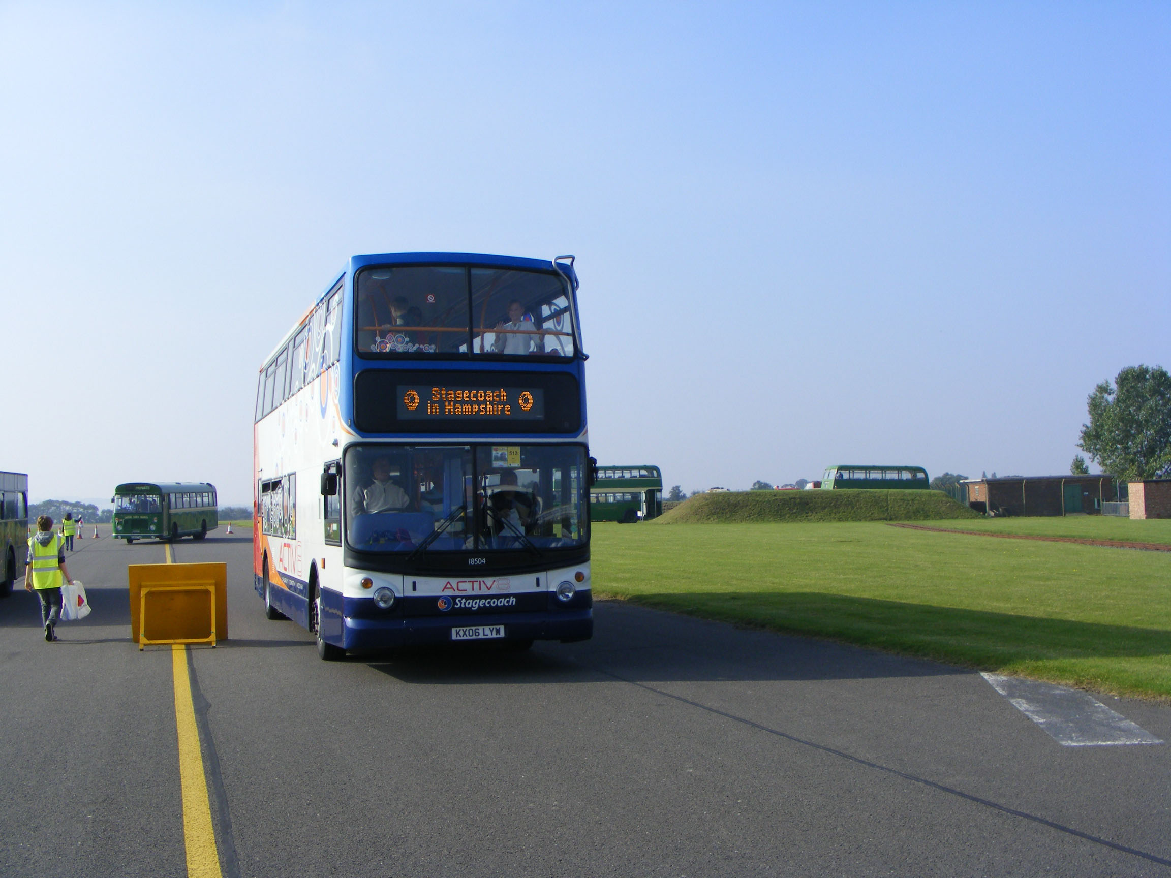 Midland Red South managed to get some new Tridents in 2006, but 18504 (KX06LYW) is seen arriving at Showbus 2008 with Activ8 branding used by its new owner, Stagecoach in Hampshire. |