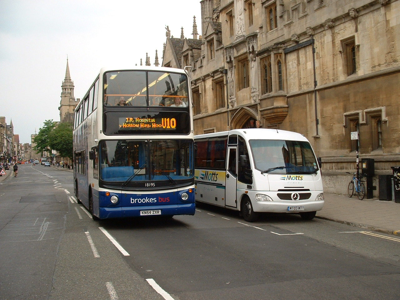 Further Tridents were added to the Brookes fleet for the 2004/2005 academic year. Whilst dedicated vehicles were awaited new Stagecoach Manchester Tridents in full Stagecoach livery were used. Here is one of the awaited buses, 18195 (KN54ZXR) approaching Headington roundabout from Wheatley, as can be seen they differ from earlier deliveries by having Alexander ALX400 bodies.