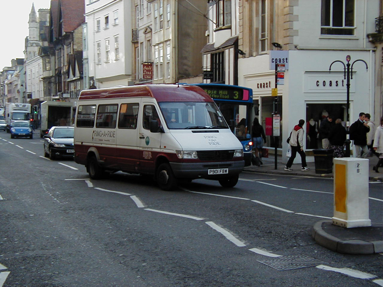 Of a similar nature, this Mercedes is seen in central Oxford in October 2003 on Ring & Ride services.