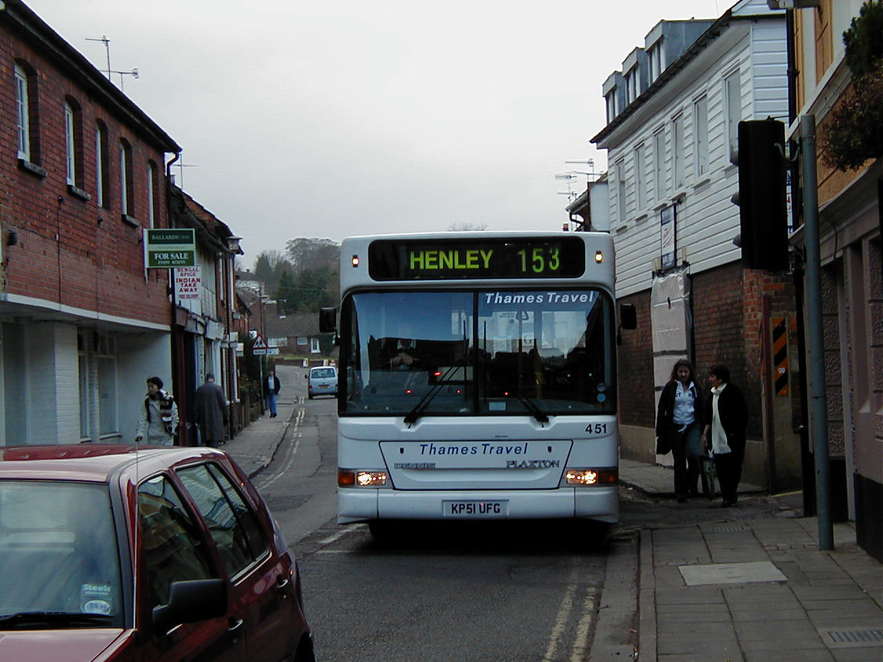 Fleet numbering, when introduced, linked to the year of registration. 451 (KP51UFG) was the 4th bus delivered with a 51 reg. The MPD is seen in December 2003 in Henley.