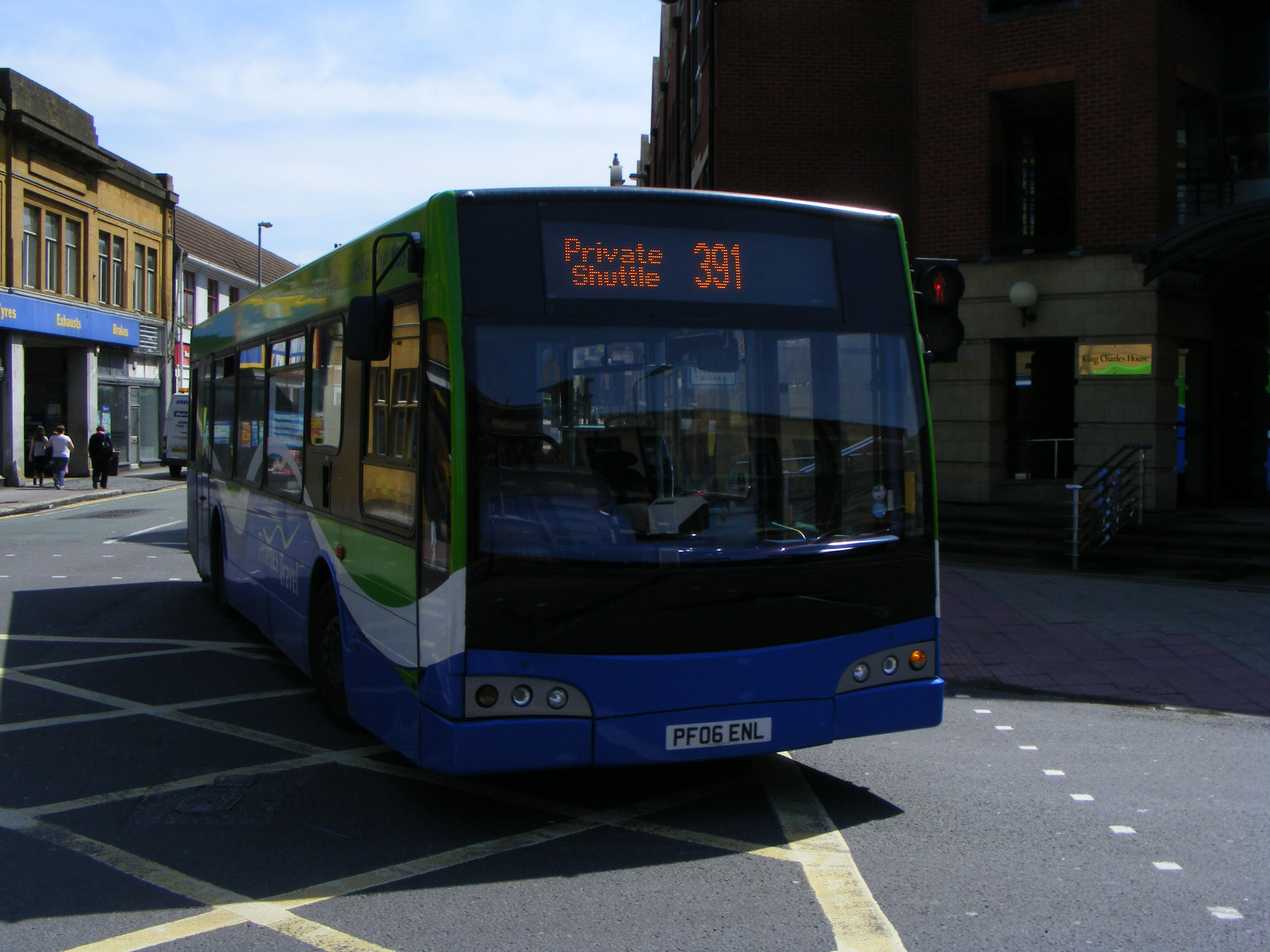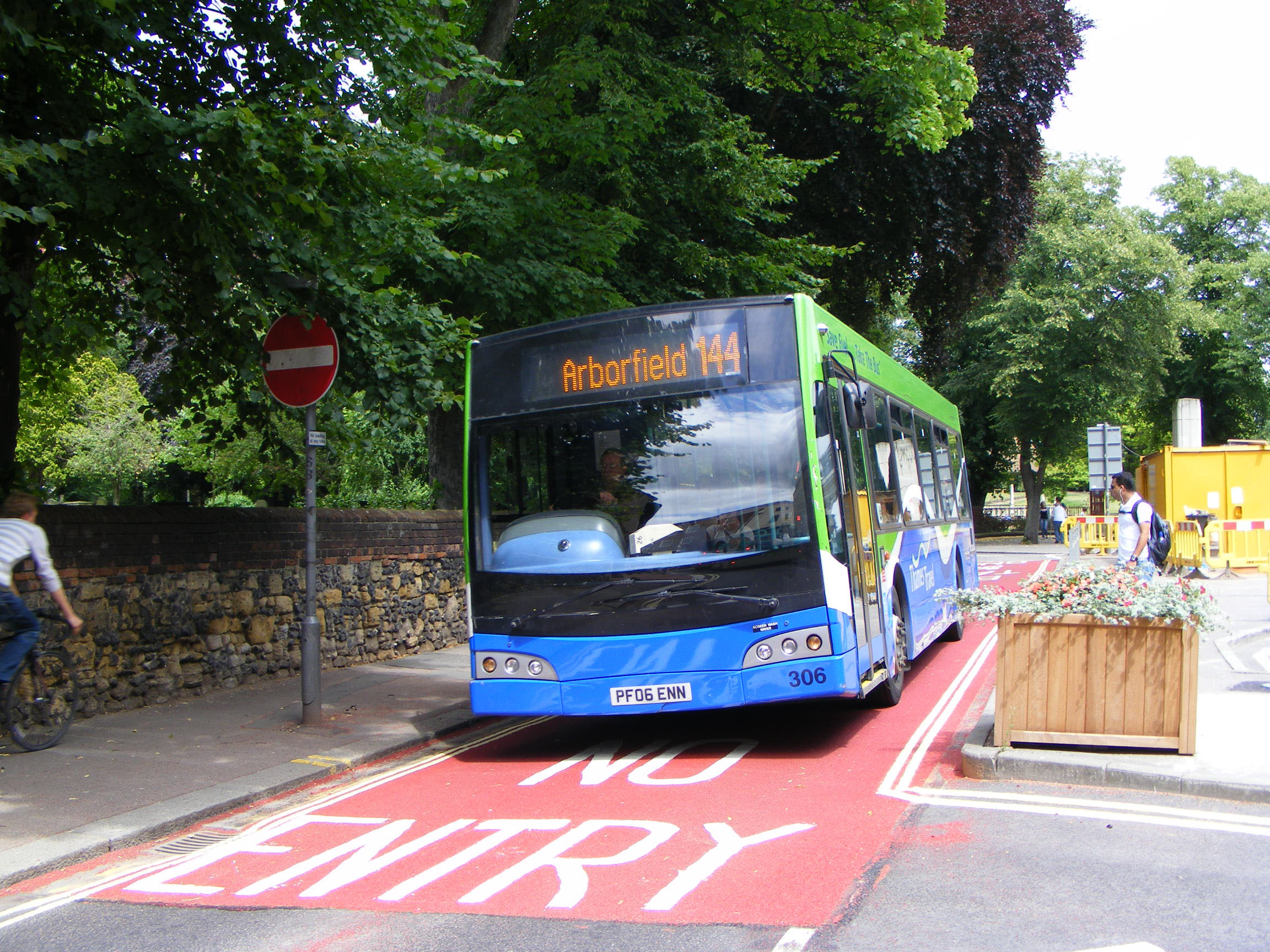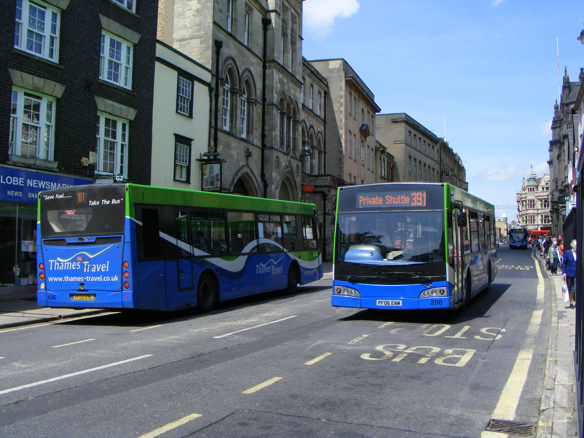 Passing by 406 in St Aldate's is sister vehicle 206 (PF06ENM) affording contrasting front and rear views