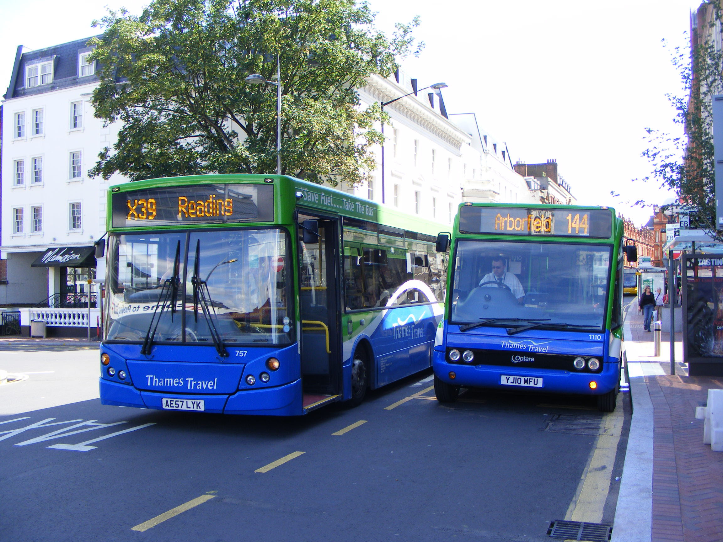 Seen in Bracknell Bus Station in June 2013 was Optare Solo 710 (MX08MYY) new to Britannia Parking in Bournemouth. The bus was transferred to Carousel in 2014. Note this is a different 710, unlike YJ10MFK the fleet number does not represent the seventh (7-) bus purchased in 2010 (-10), it is numbered between 610 and 810. This 710 is numbered between 709 and 711 in the chronological scheme introduced under Go-Ahead within Oxford's historic scheme. The bus thus retained the number 710 when transferred to Carousel. |