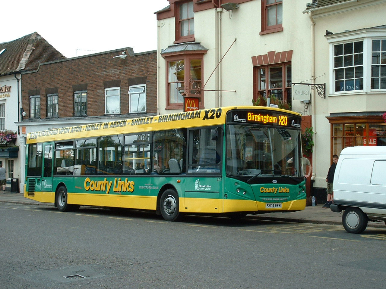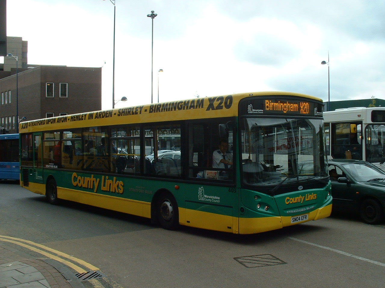 Warwickshire was more patriotic with its subsequent purchases and provided seven TransBus Enviro300 buses for services. Four went to Stagecoach Midland Red and three moved quickly from Pete's Travel to Guide Friday/Startford Blue. One of the trio is 401 (SN04EFM) seen in Straford route branded for the X20. |