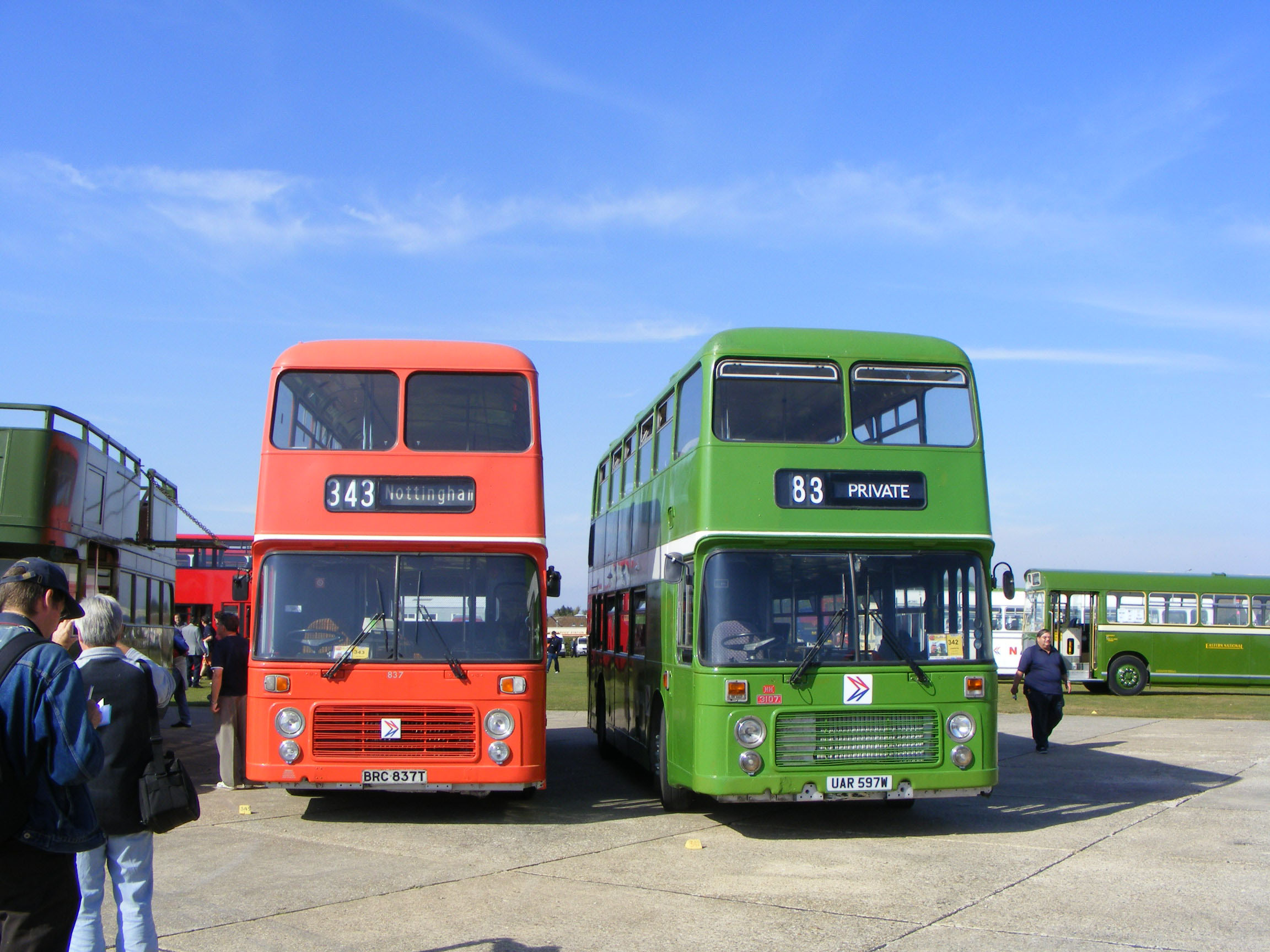 Forward to 2009 and 837 poses alongside Eastern National VRTSL3 3107 (UAR597W). A nice pairing of the two prime former NBC bus liveries. |