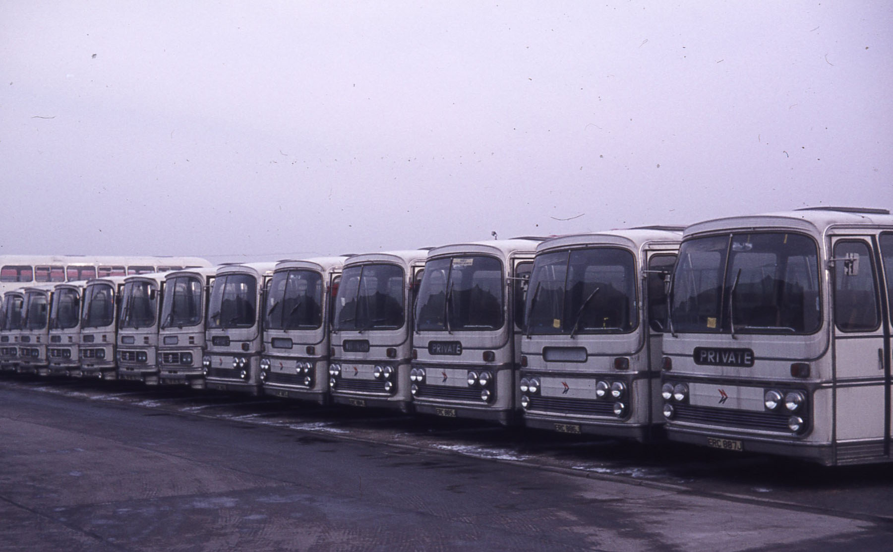 In the mirk of the Derby depot in early NBC days are two standard Trent Fleetline/Alexanders with an NBC liveried new Bristol VRTSL6G.