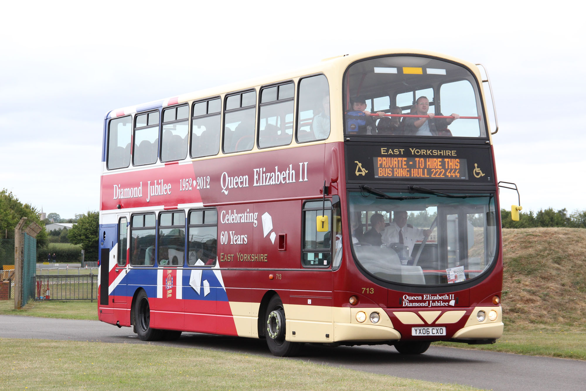 In celebration of Her Majesty's Diamond Jubilee in 2012 East Yorkshire repainted Volvo B7TL 713 (YX06CXO) in a special commemorative livery.