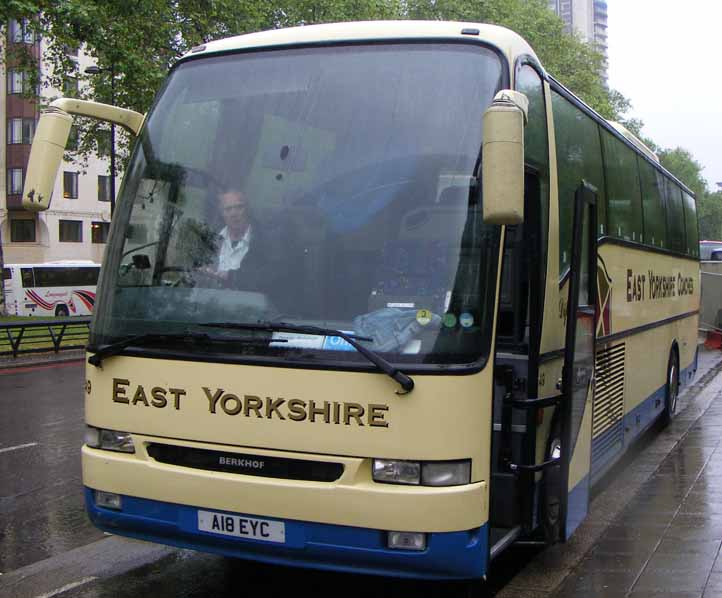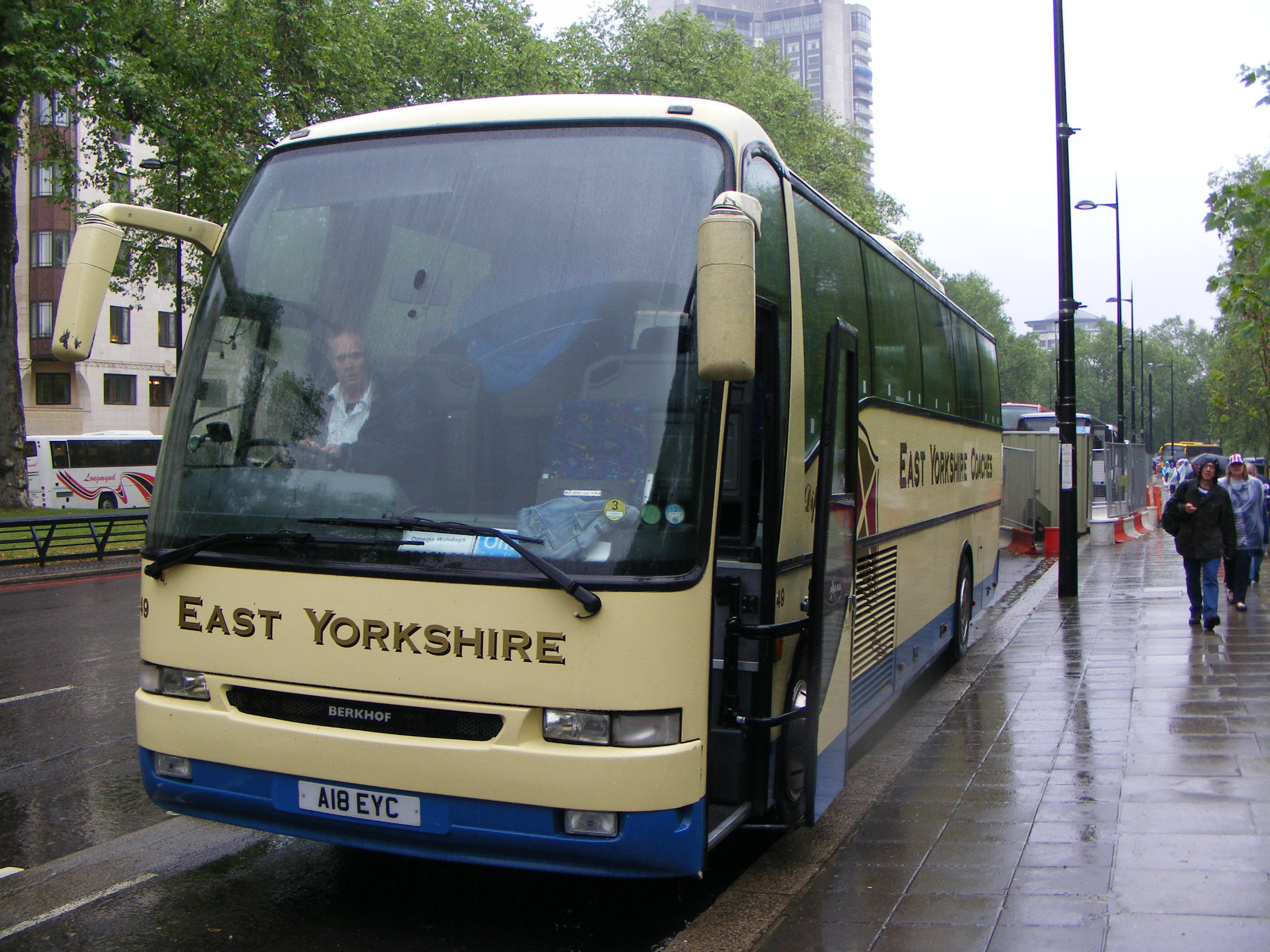 One of the trio of Berkhof Axial bodied Volvo B10Ms - we have already seen 47 - is 49 re-registered from YN51AXO to cherished mark A18EYC. In the now standard cream and blue coach colours it is seen in Park Lane on a very wet day, which many will remember accompanied Her Majesty's Thames Jubilee Pageant on June 3rd 2012.