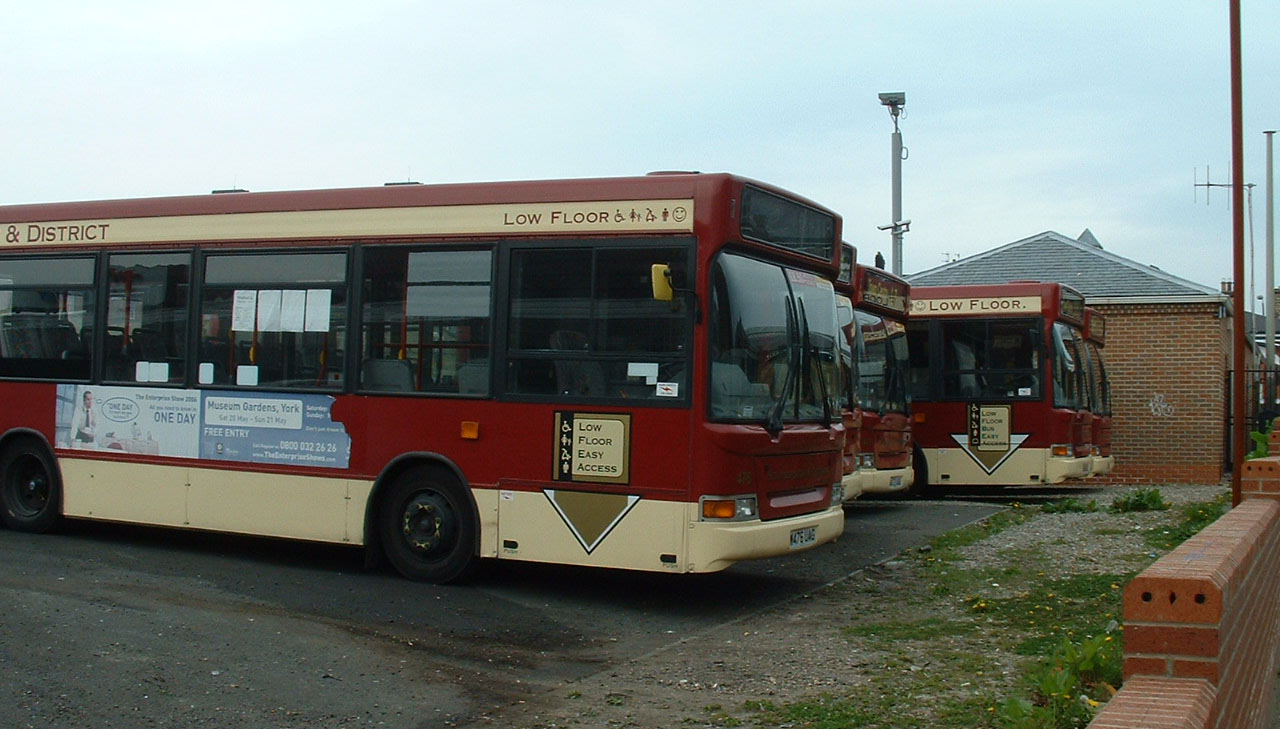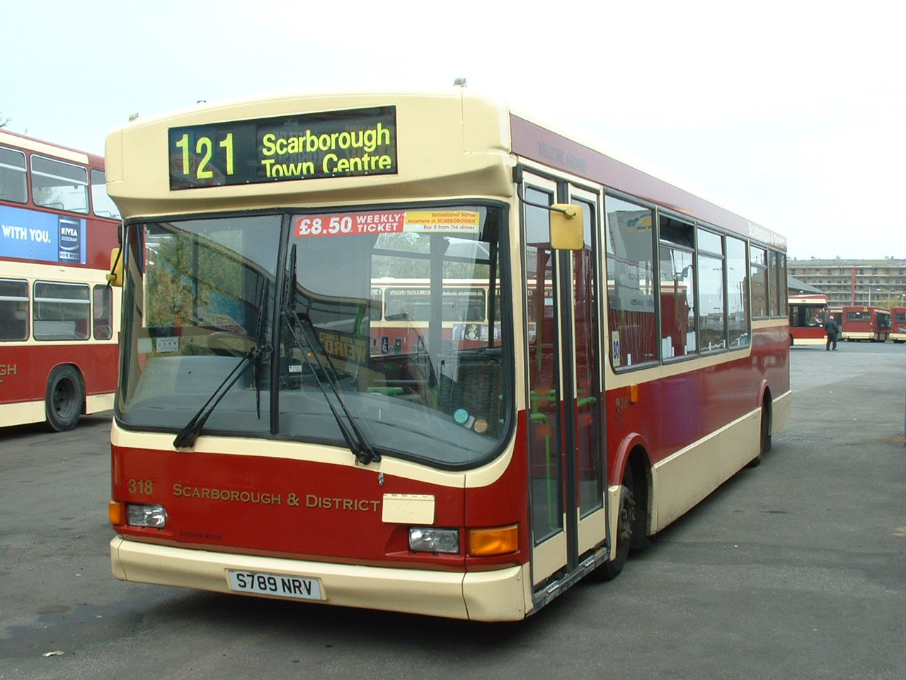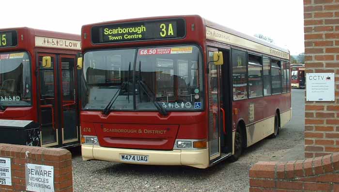 With the Plaxton factory in Scarborough the popularity of the local produce with Scarborough & District is not surprising. This line up of Darts at Scarborough Station is headed by the popular short Mini Pointer Dart (MPD) model, 476 (W476UAG).