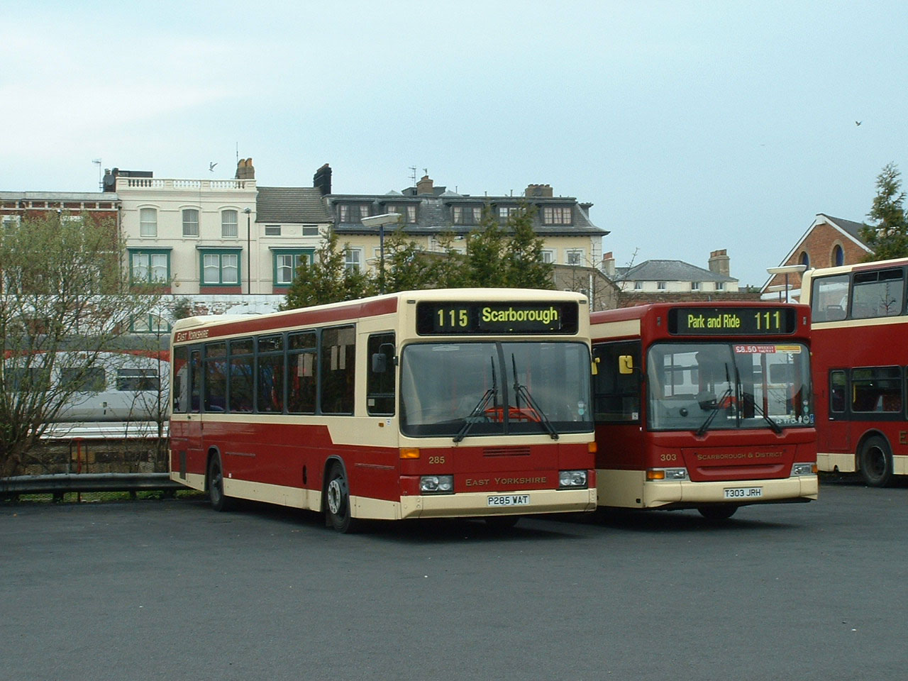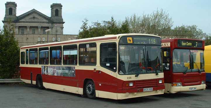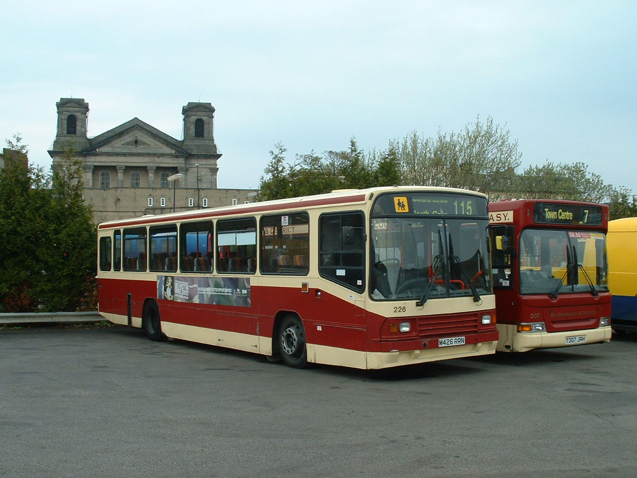 Alexander PS bodied Volvo B10M 226 (M426RRN) is one acquired from Stagecoach Ribble, seen in Scarborough next to Dart SLF 307 (T307JRH) in April 2007.