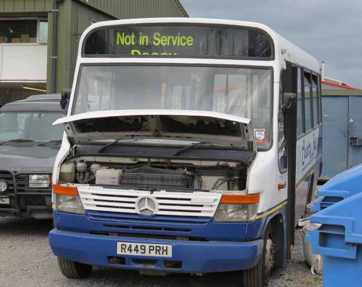 Mercedes 449 (R449PRH) with its Plaxton Beaver 2 body is seen with Country Bus in Devon in August 2013. The chassis is an O814D model. Picture ref 021. |
