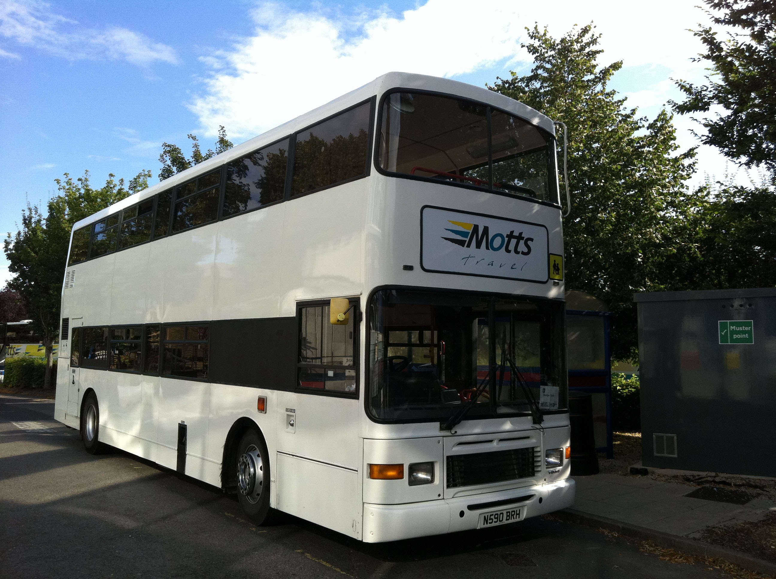 Sister vehicle 590 (N590BRH) in full Motts Travel livery is seen after a trip to Thorpe Park in July 2012. |