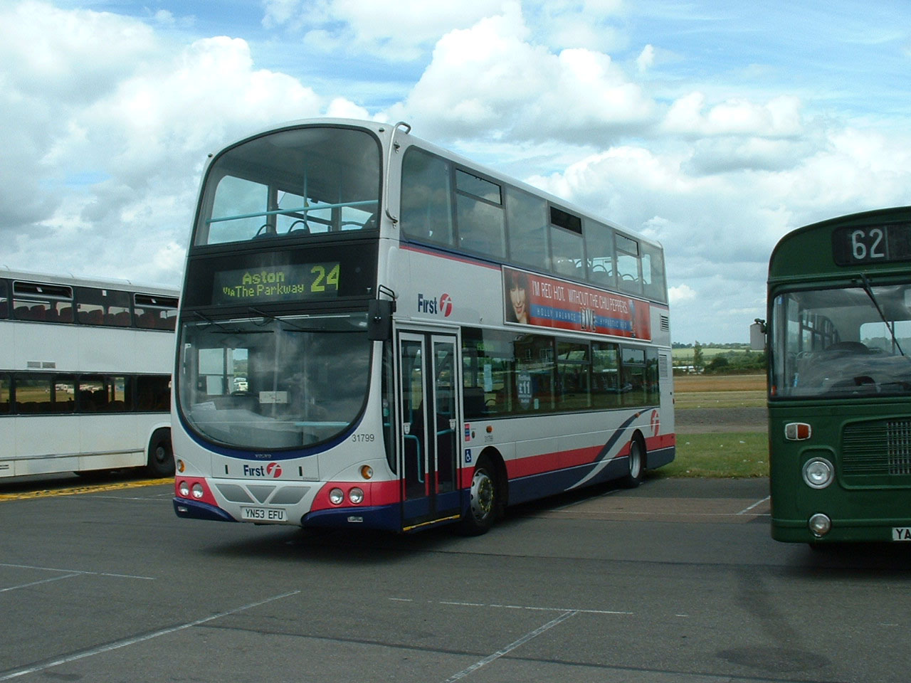 Volvo 31790 (YN53EFH) was at SHOWBUS 2005 with Overground branding. It is alongside ex London Olympian 34103, seen arriving earlier. In the First line up are another B7TL from First Glasgow and a Plaxton President bodied Dennis Trident from Centrewest. ![]() |
