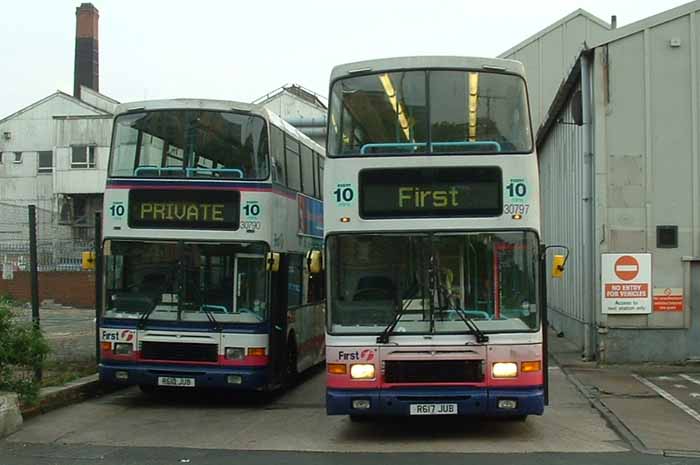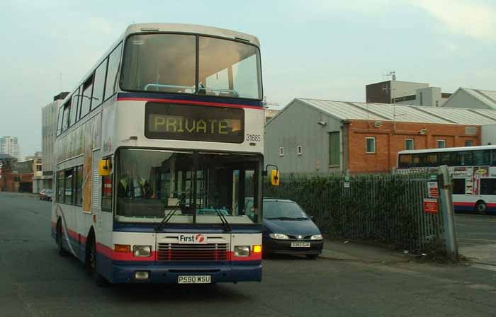 In early 2007 the handsome Alexander Royale bodied Volvo Olympian was the mainstay of the doubledeck fleet in Leeds. The local delivery had been supplemented by transfers from within the group of buses like 31685 (P590WSU) which had arrived from First Glasgow and is seen passing Bramley depot. |