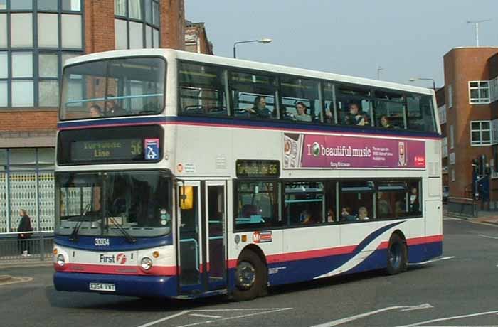 First deployed its Overground network concept to Leeds, with each route having its own colour in London Underground style. This unidentified Alexander ALX400 bodied Volvo B7TL has side branding for route 56 in turquoise. Other buses in the fleet received similar branding for different routes, but operationally those on the ground did not share the vision of those despatching and allocating buses in the morning run out, consequently the wrong branded buses appeared on the wrong routes. Slowly the individually branded buses gave way to destination displays carrying the route colour information, at the expense of destination details.