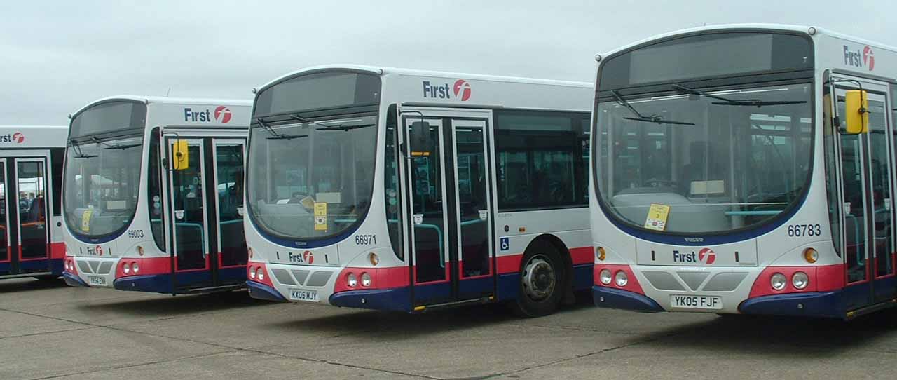 Three Wright Eclipse bodied Volvo B7RLE buses were lined up together at SHOWBUS in 2005. Nearest the camera is First West Yorkshire 66783 (YK05FJF), though its registration suggests it might have been more at home in Leicester. Alongside 66971 (KX05MJY) hails from Northampton and on the end is an entry from First in York, 69003 (YK54ENN).